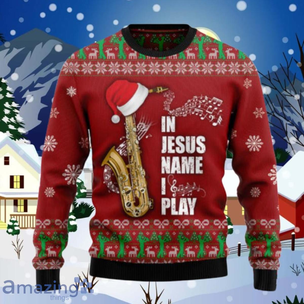 Saxophone In Jesus Name I Play Ugly Christmas Sweaters For Men And Women Style Gift Informations: