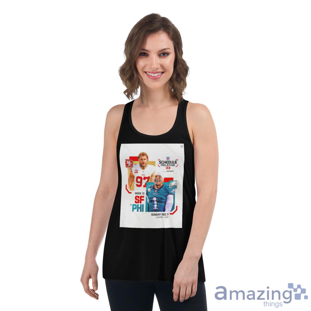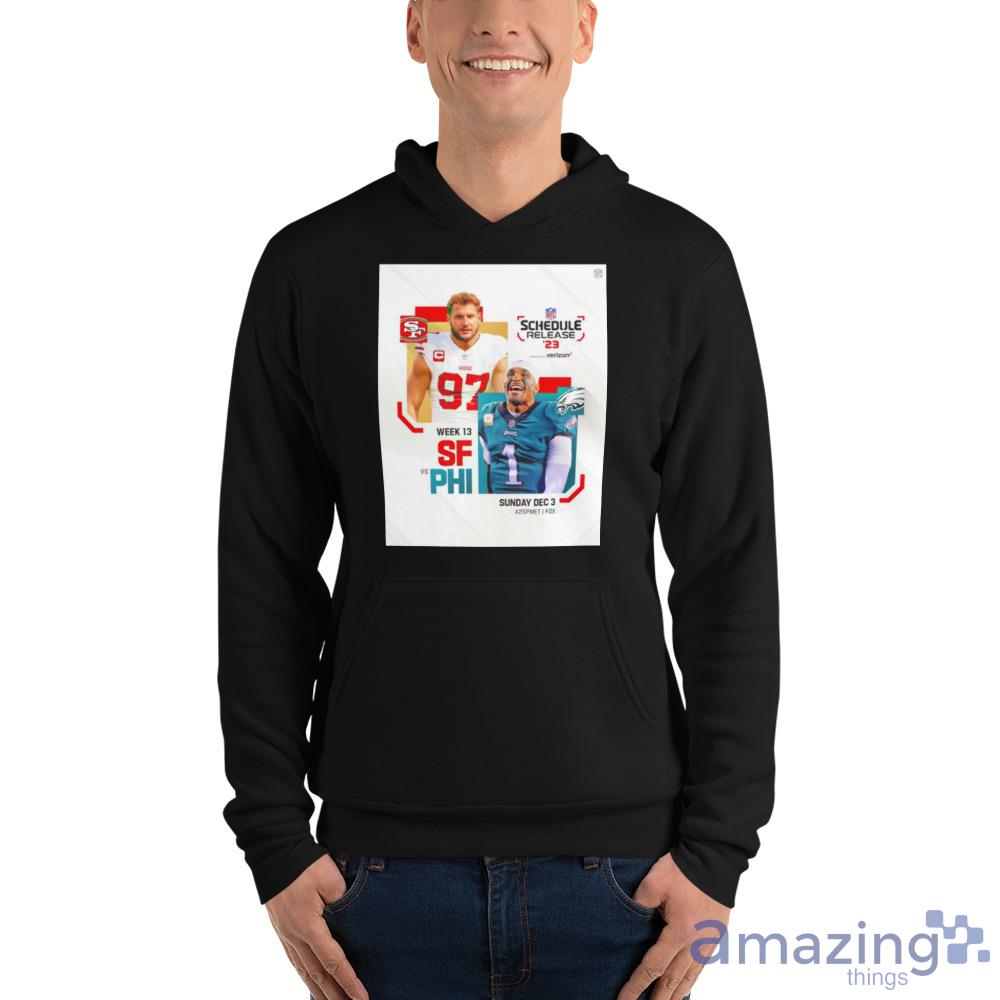 The NFC Championship rematch is going to be one of the most exciting events of the NFL season, and there’s no better way to show your support than with our Schedule Release NFC Championship Rematch in Week 13 Trending T-Shirt for Men and Women. So don’t wait! Order yours today and get ready to cheer your team to victory!