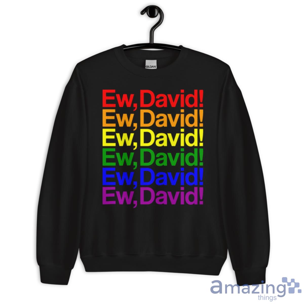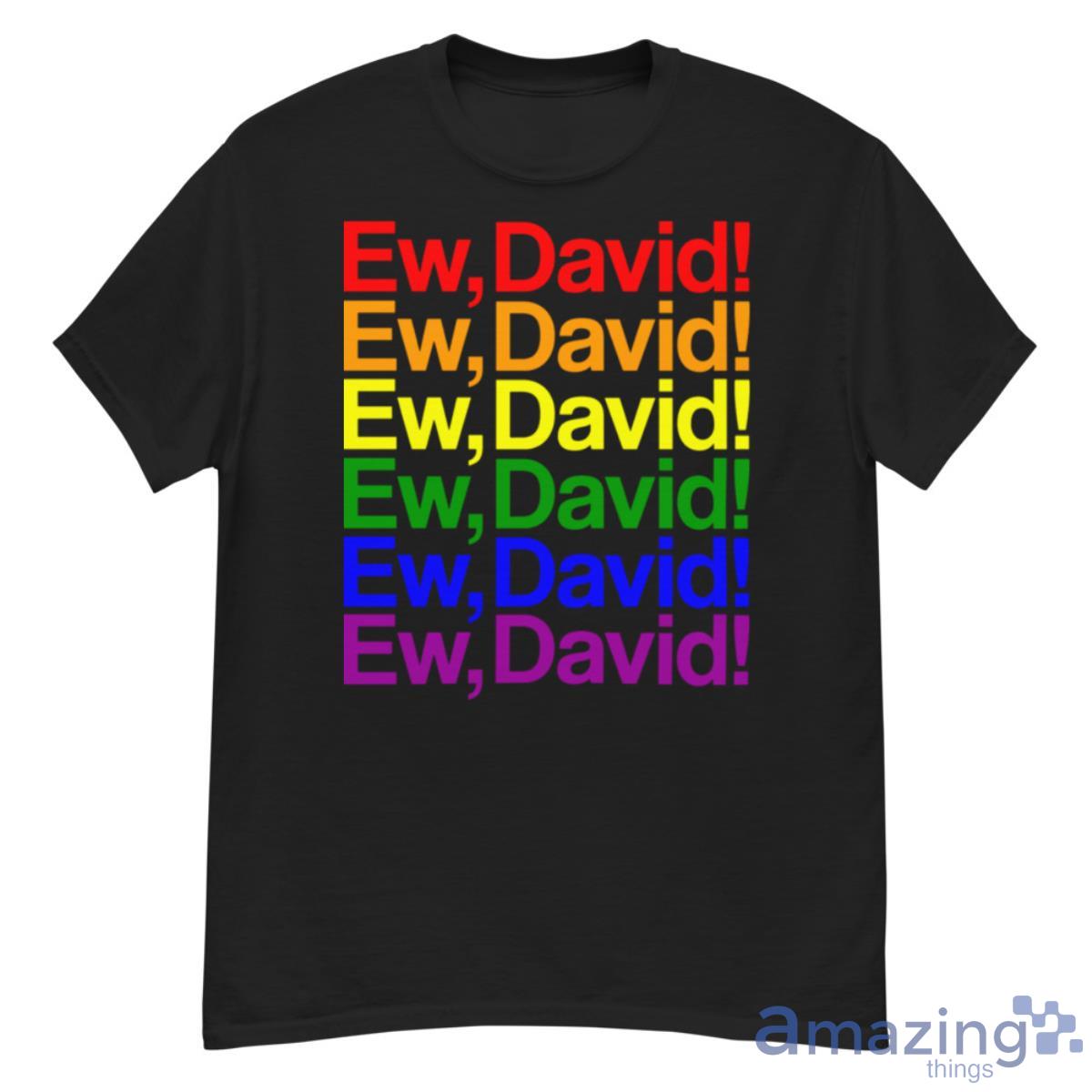 Get ready to show off your love for Schitt’s Creek with our Ew, David Pride T-Shirt! This stylish and comfortable tee features the iconic phrase “Ew, David” in bold letters, along with a colorful and vibrant pride flag design. Whether you’re a die-hard fan of the show or simply looking for a fun and trendy way to express your individuality, this t-shirt is the perfect addition to your wardrobe.
