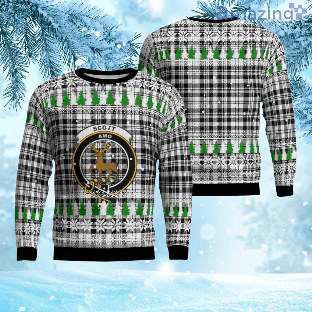 Scott Black & White Modern Crest Tartan Christmas Ugly Sweater 3D Gift For Men And Women