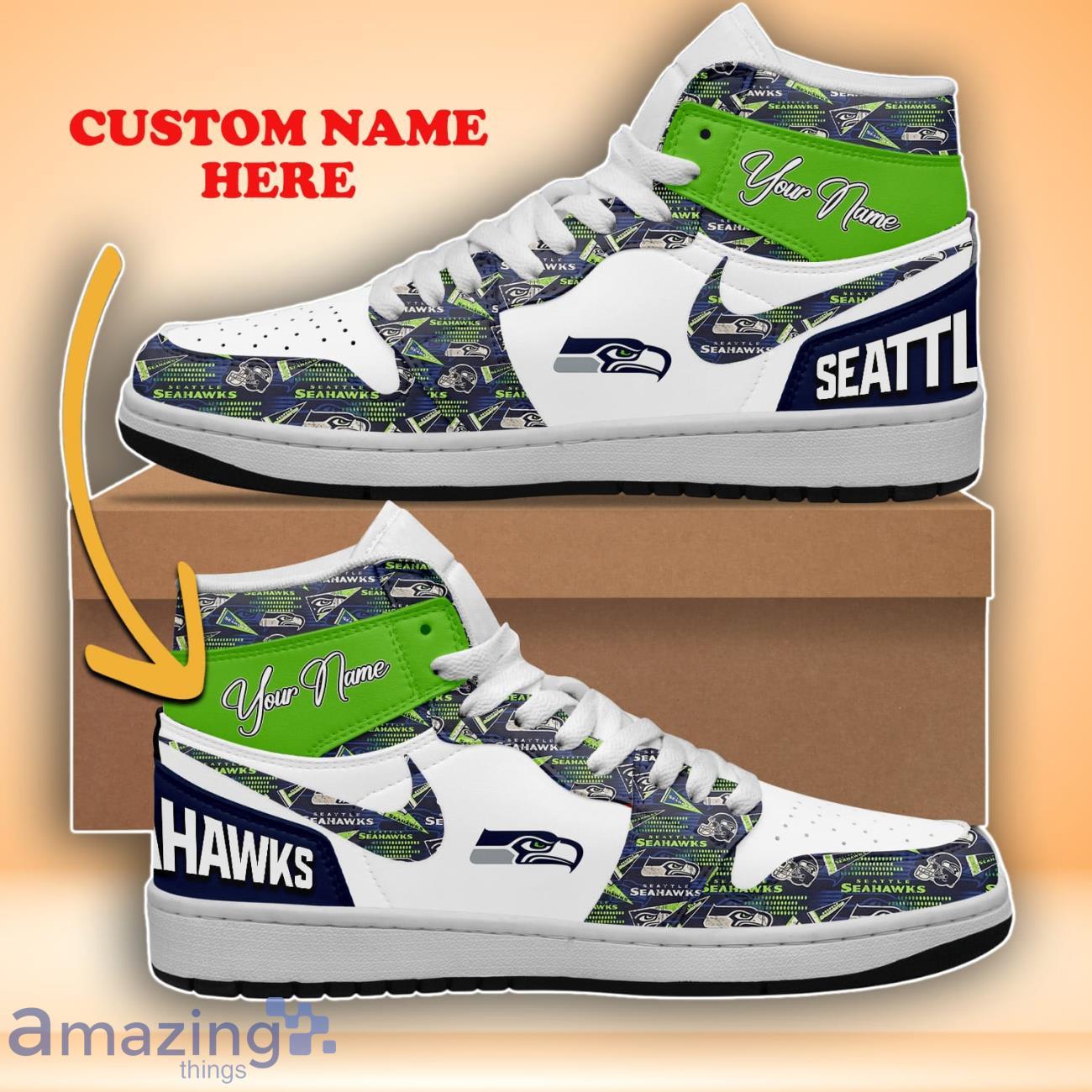 Seattle Seahawks Custom Name Air Jordan High Top Trendy Style For Fans Information: