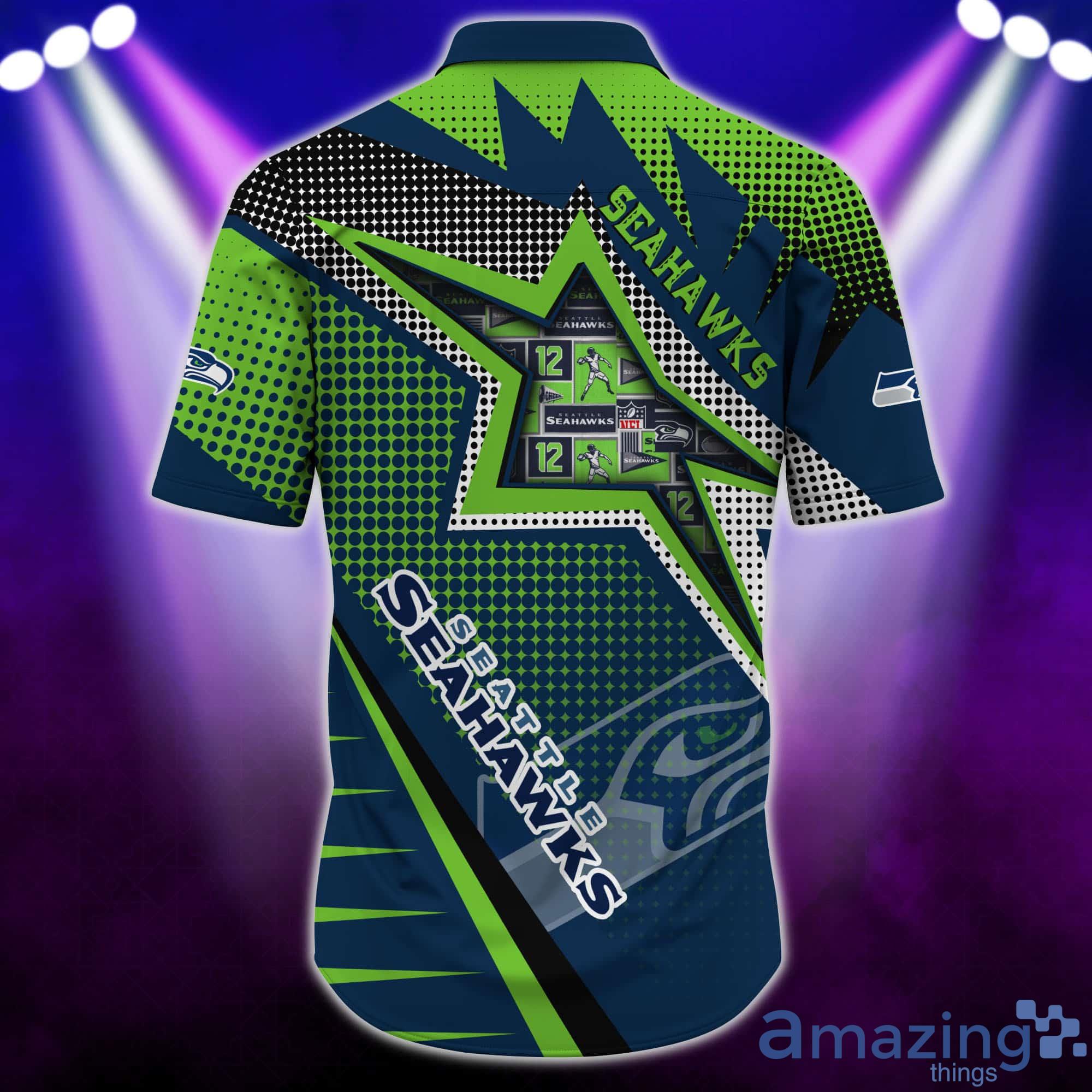 Introducing the Hawaiian, the Seattle Seahawks NFL Half Tone Texture Style Short Sleeves Hawaiian Shirt. This shirt is perfect for any Seahawks fan who wants to show their team pride in style. The Half Tone Texture Style gives the shirt a unique look that is sure to turn heads, while the short sleeves are perfect for those hot days spent cheering on your team. Whether you’re tailgating or watching the game at home, this shirt is a must-have for any true Seahawks fan.