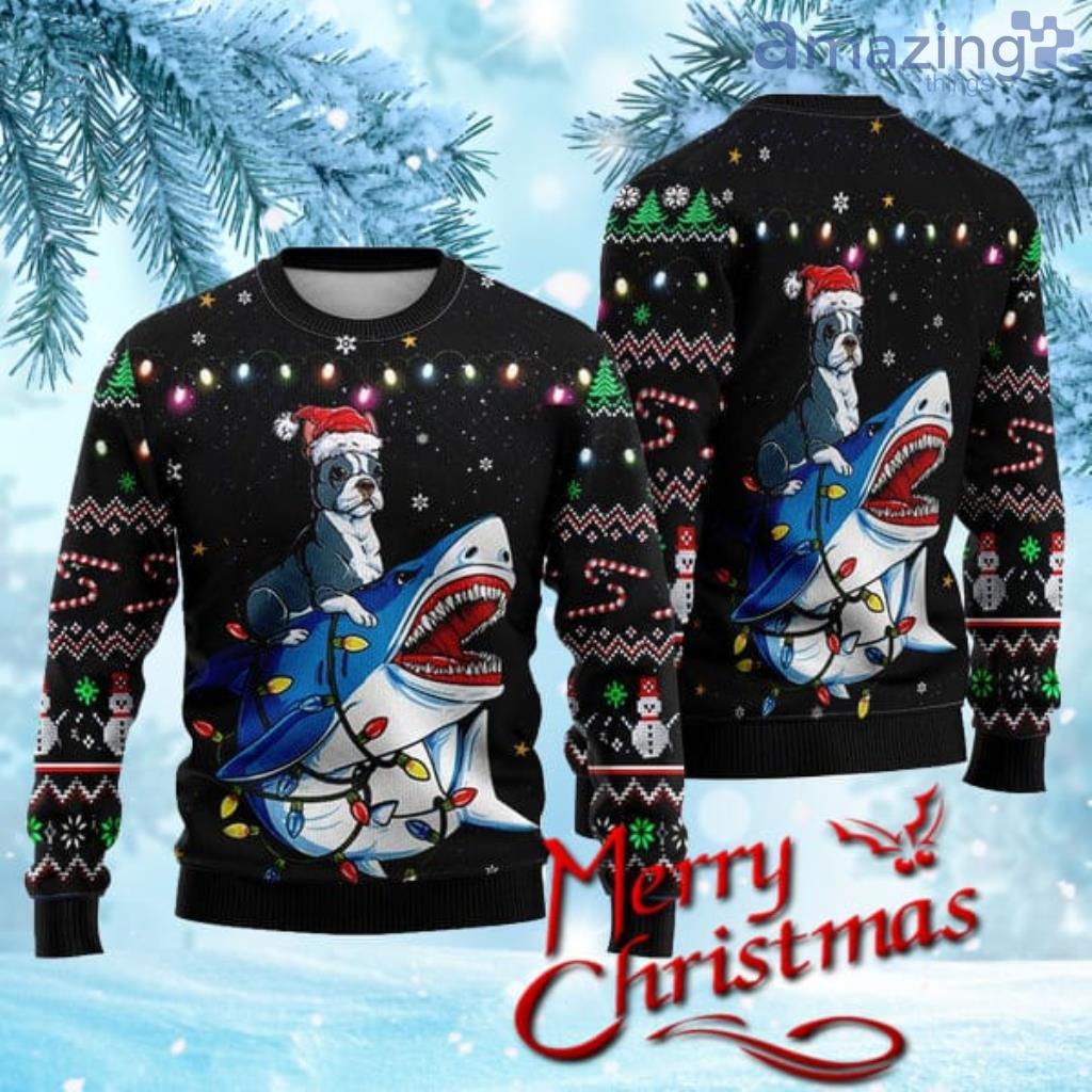 Shark Boston Terrier Ugly Christmas Sweater Gift Knitting Sweater Information