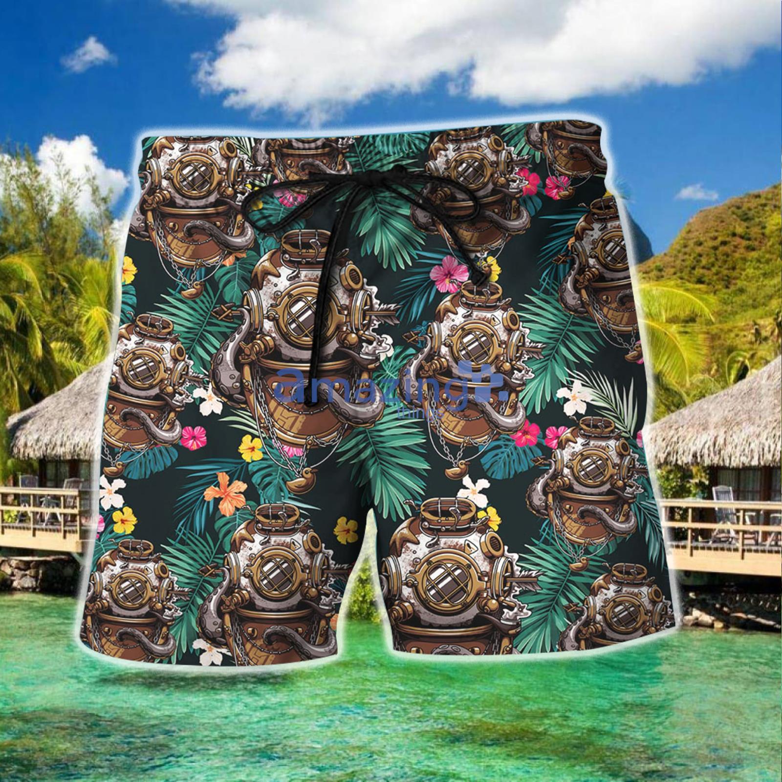 Shop Scuba Diving Helmet Combo Hawaiian Shirt And Shorts Gift For Summer Vacation Details: