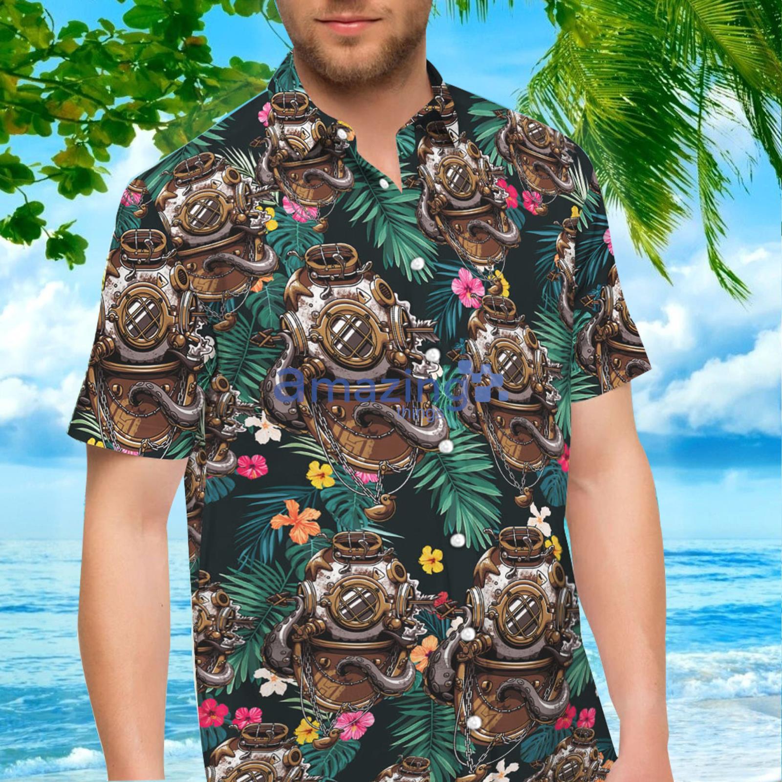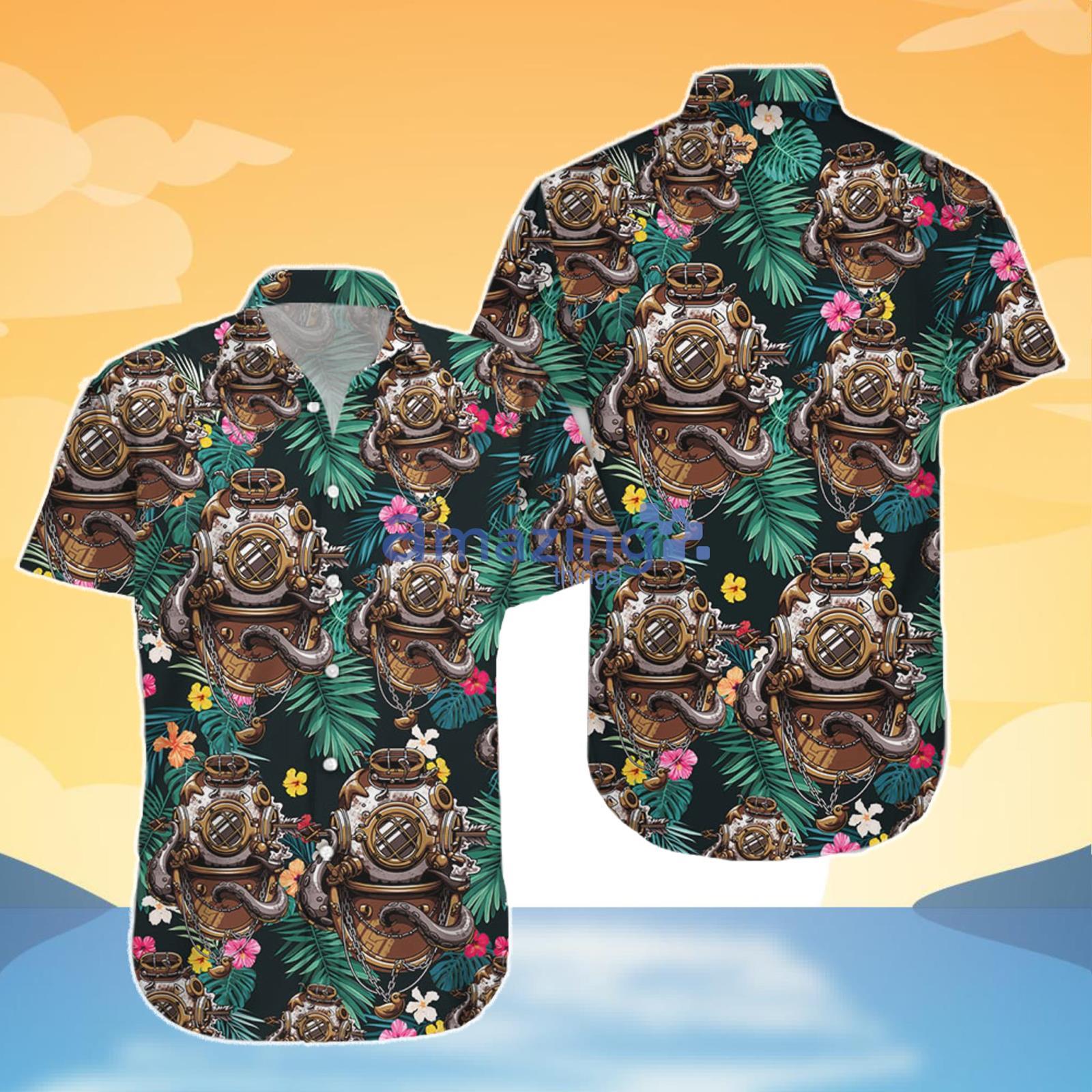 Looking for the perfect outfit for your summer vacation? Look no further than our Shop Scuba Diving Helmet Combo Hawaiian Shirt And Shorts! This amazing combo is the ultimate choice for those who love to dive into the ocean and explore the underwater world.