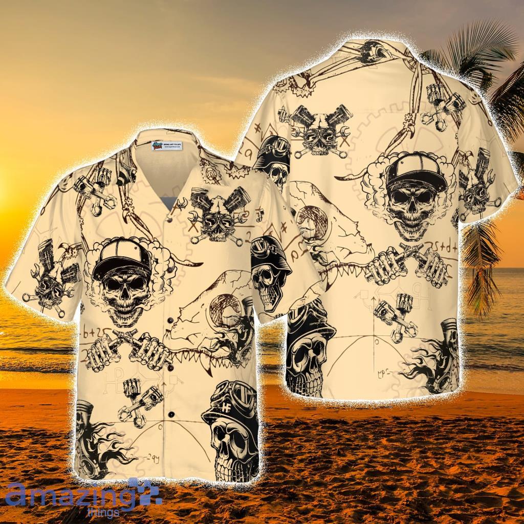 Skull On Retro Mechanism Background Hawaiian Shirt