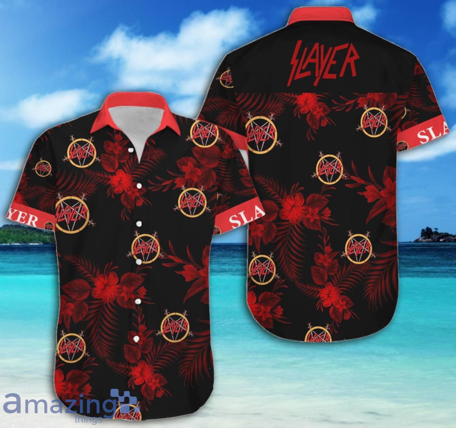 This design is available in a combo Hawaiian shirt & shorts. You can also get it separate. The default option is only one shirt or one pair of shorts. You have chosen a combo to get them both. This combo Slayer Flower Red Black Short Sleeve Hawaiian Shirt And Short is perfect to go to the beach. Get yours now or make a great gift.