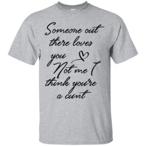 In conclusion, the “Someone Out There Loves You Not Me Though I Think You’re a Cunt Shirt” is more than just clothing; it is a provocative form of wearable communication. Available as a t-shirt, hoodie, long sleeve, and sweatshirt, it offers a variety of options for those who wish to make this particular bold statement. It stands out as a piece of apparel designed to challenge, amuse, or even offend, depending on the perspective of the viewer.