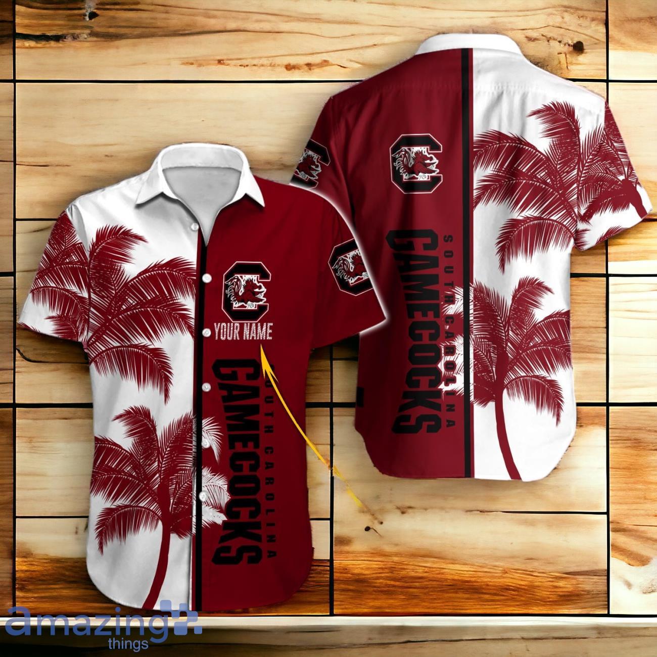 This design is available in a combo Hawaiian shirt & shorts. You can also get it separate. The default option is only one shirt or one pair of shorts. You have chosen a combo to get them both. This combo South Carolina Gamecocks Hawaiian Shirt And Short Palm Tree Custom Name is perfect to go to the beach. Get yours now or make a great gift.
