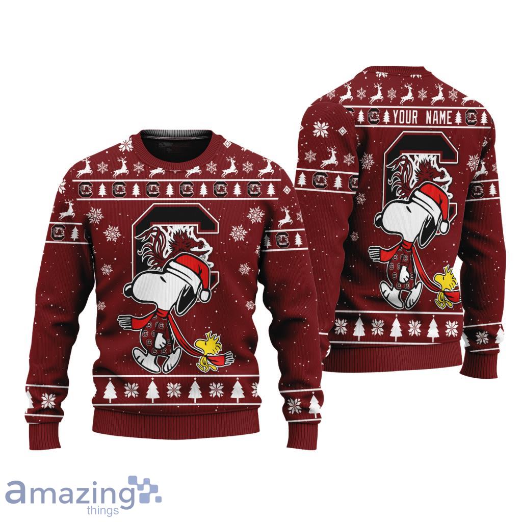 Get into the holiday spirit with our South Carolina Gamecocks NCAA Football Snoopy And Woodstock Christmas Ugly Sweater 3D! Show off your team pride and love for the Peanuts characters with this unique and festive sweater. Perfect for any Gamecocks fan looking to spread some Christmas cheer while staying cozy and stylish. Don’t miss out on this one-of-a-kind holiday sweater that will surely be a hit at any Christmas party or game day event. Order yours today and make this holiday