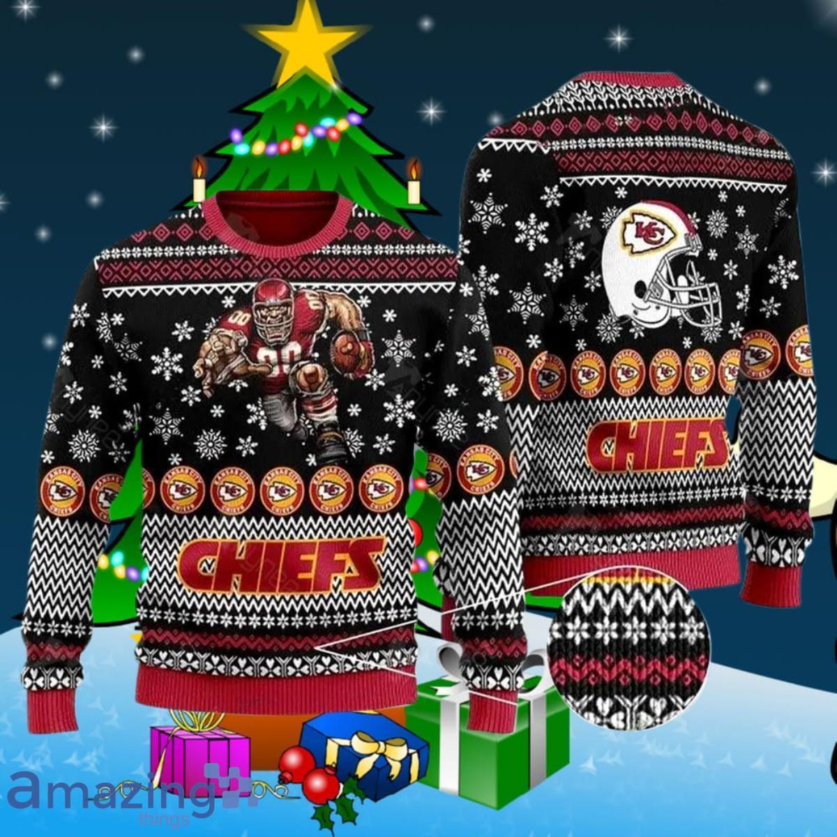 Some of the Sports Football Team Kansas City Chief With Helmet In The Back For Football Fans Ugly Christmas Sweater Style Gift photos