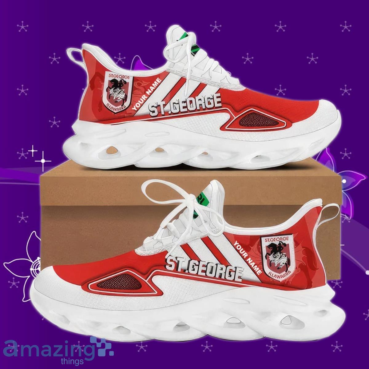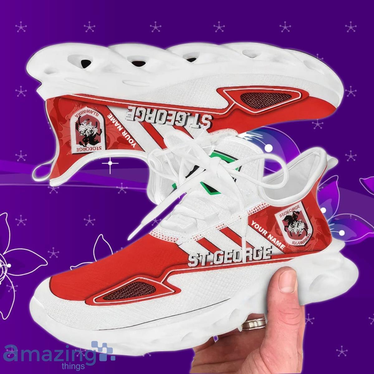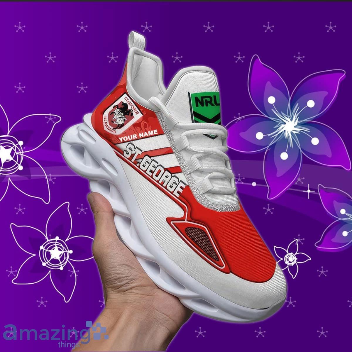 This St. George Illawarra Dragons NRL Max Soul Custom Name Special Gift Men And Women For Fans is a breathable, lightweight, and comfortable casual outdoor shoe that has a unique design. It is made of a mesh fabric which makes it sweat absorbent and breathable, while the rubber bottom ensures traction, comfort, and durability. It is available in two colors: black or white sole. There are two styles of shoelace holes so you can choose your preference.