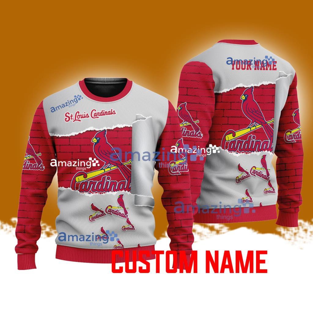 Get into the holiday spirit with our St Louis Cardinals MLB Custom Name Christmas Ugly Sweater 3D For Men Women! Show off your team pride with a personalized touch by adding your name to this festive sweater. Perfect for any baseball fan, this sweater is sure to be a hit at all your holiday gatherings. Made with high-quality materials, this sweater is not only stylish but also comfortable to wear. Don’t miss out on the opportunity to spread some Christmas cheer while supporting your favorite team. Order