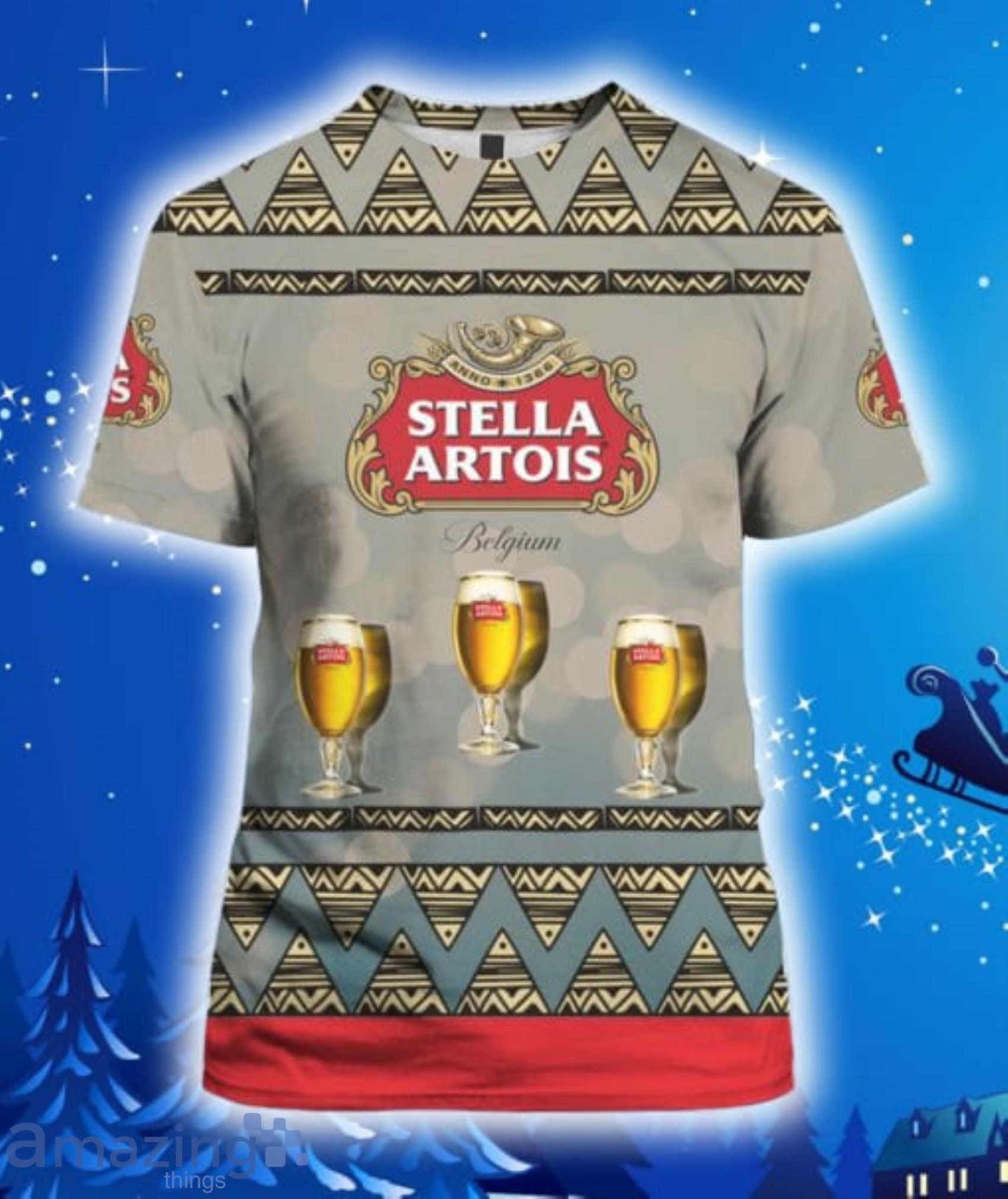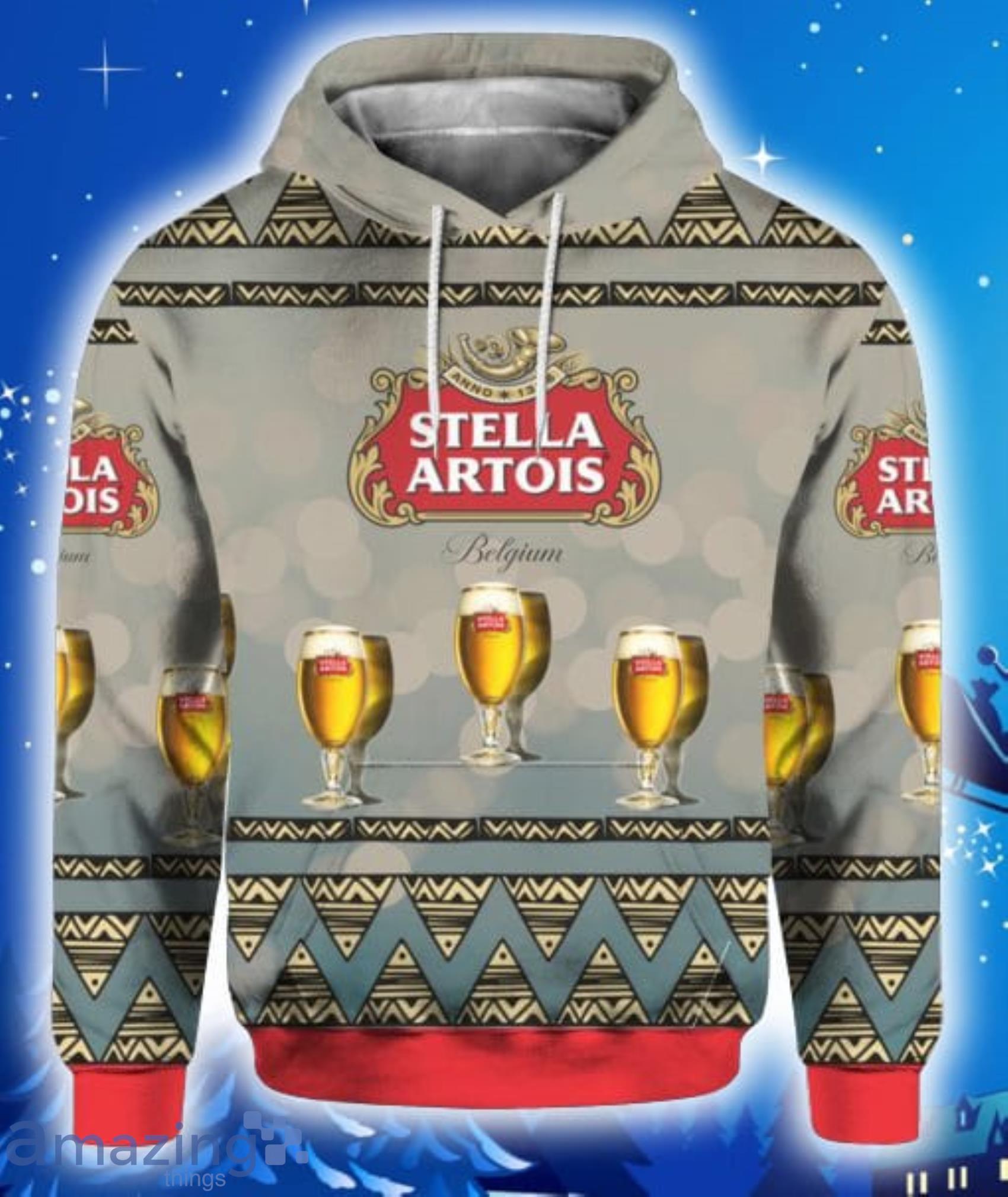 Perfect design for holiday. Get yours this shirt or this is a cute item for your daddy, gift for your mom, and gift for friends on any occasion. buy a cute Stella Artois Beer All Over Print 3D Hoodie, T-Shirt, Christmas Sweater now.