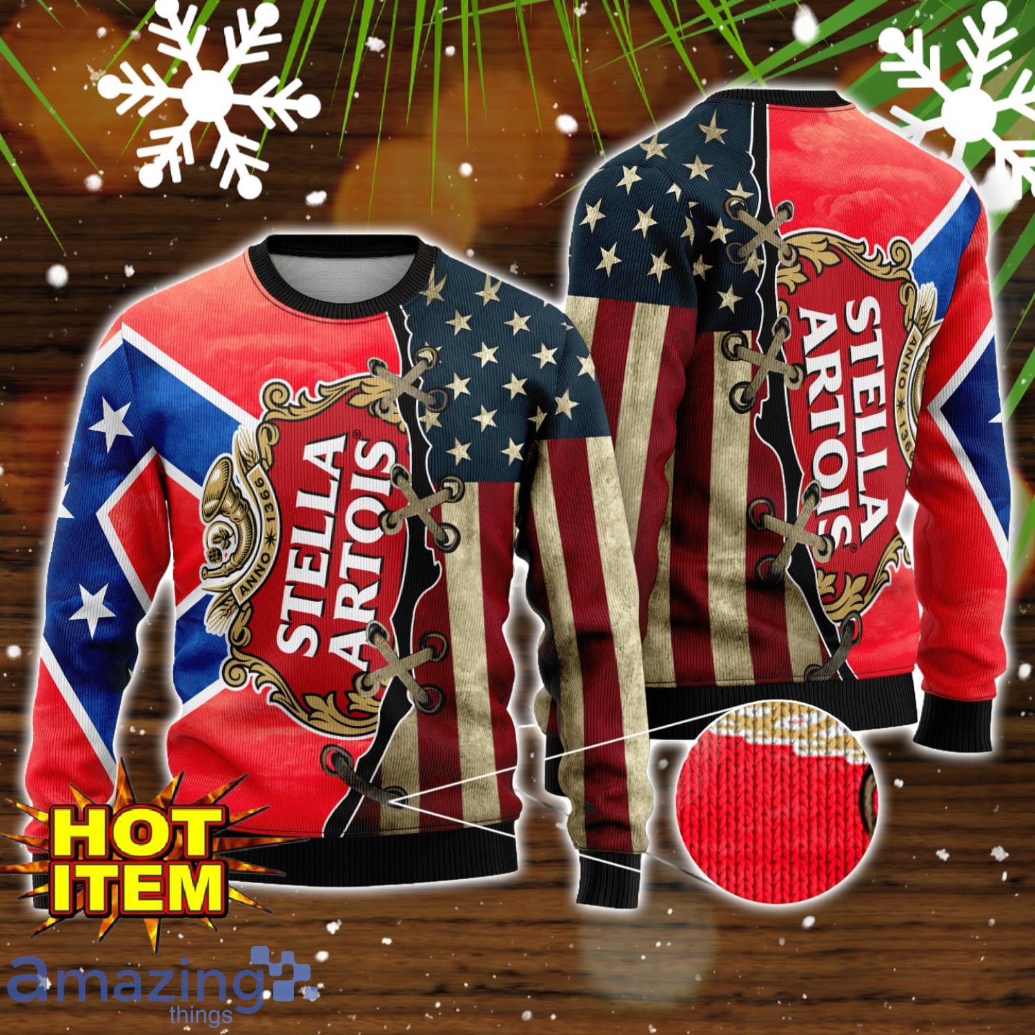 Stella Artois USA Flag All Over Print 3D Ugly Christmas Sweater Unique Gift For Christmas Information