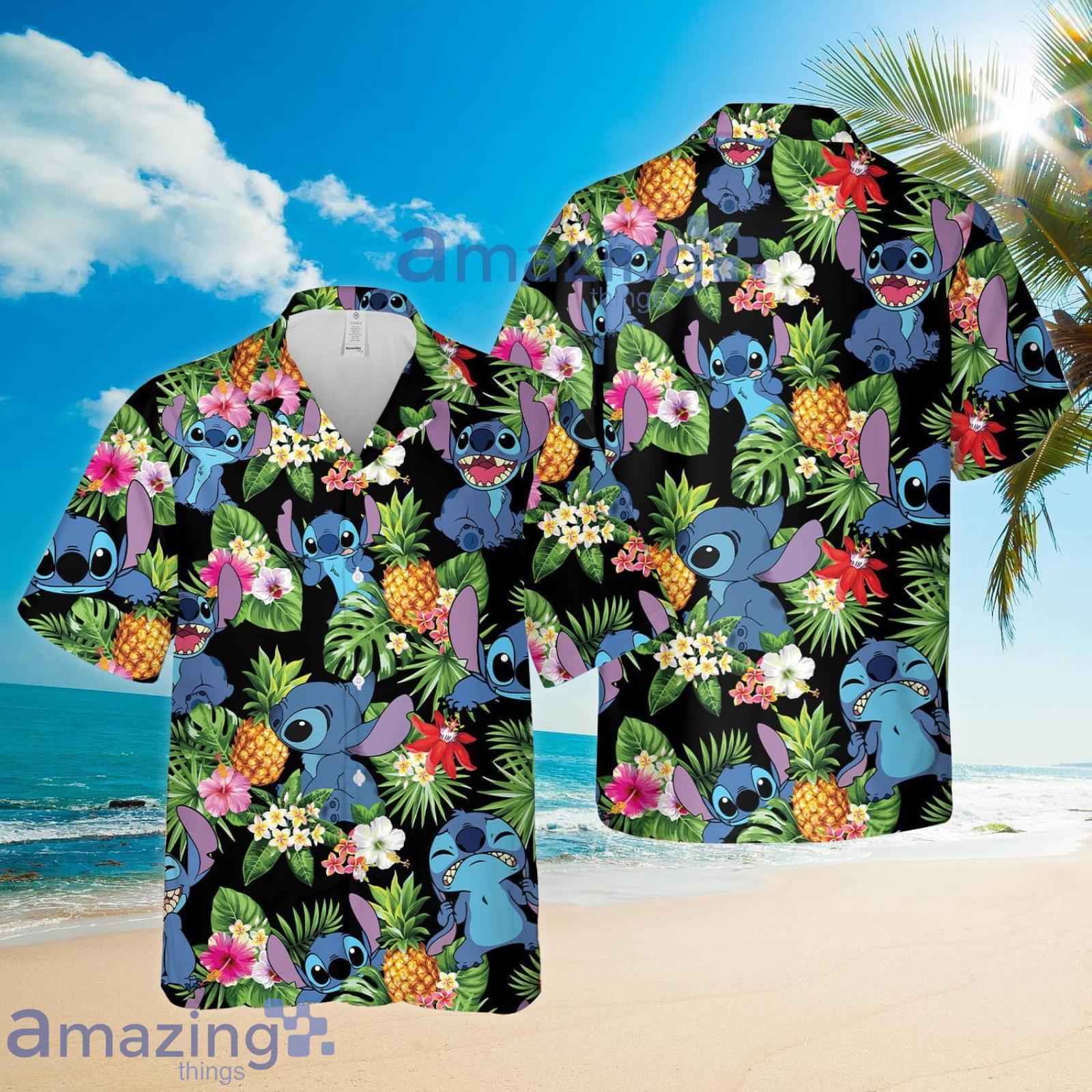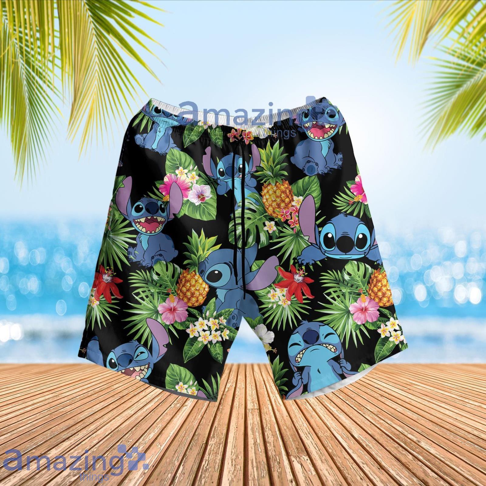 Stitch Pineapple Tropical Flower Summer Set Hawaiian Shirt And Shorts