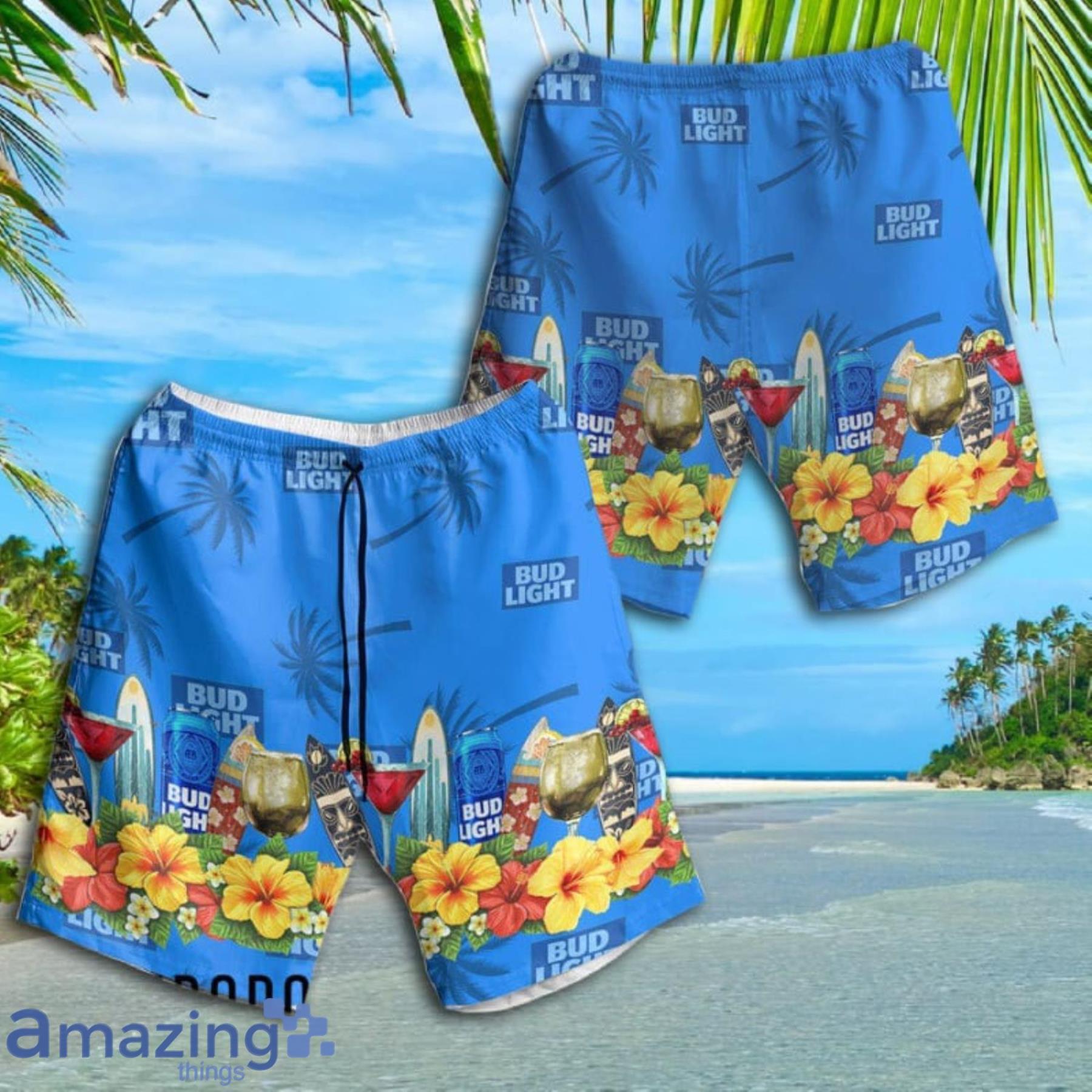 Summer Bud Light Short Sleeve Hawaiian Shirt And Short Details: