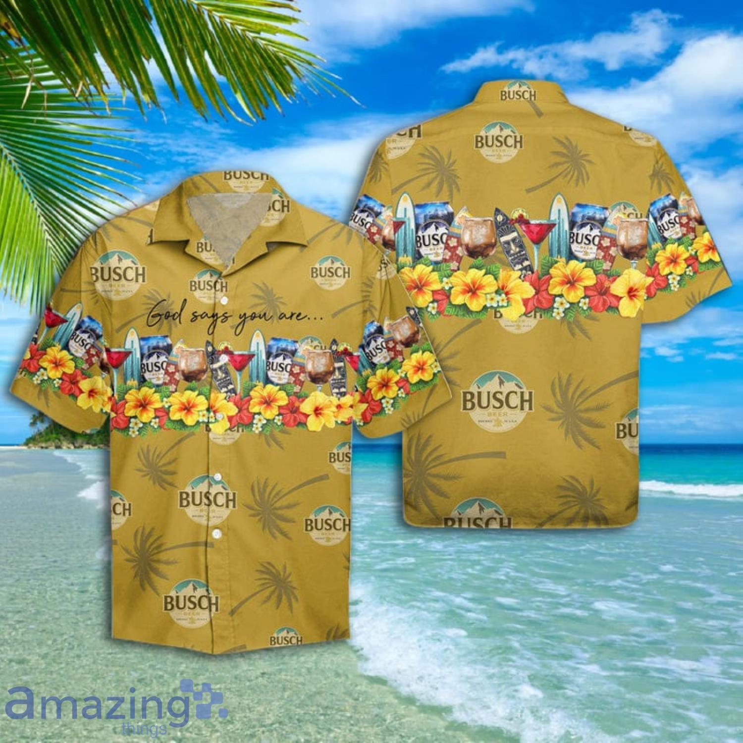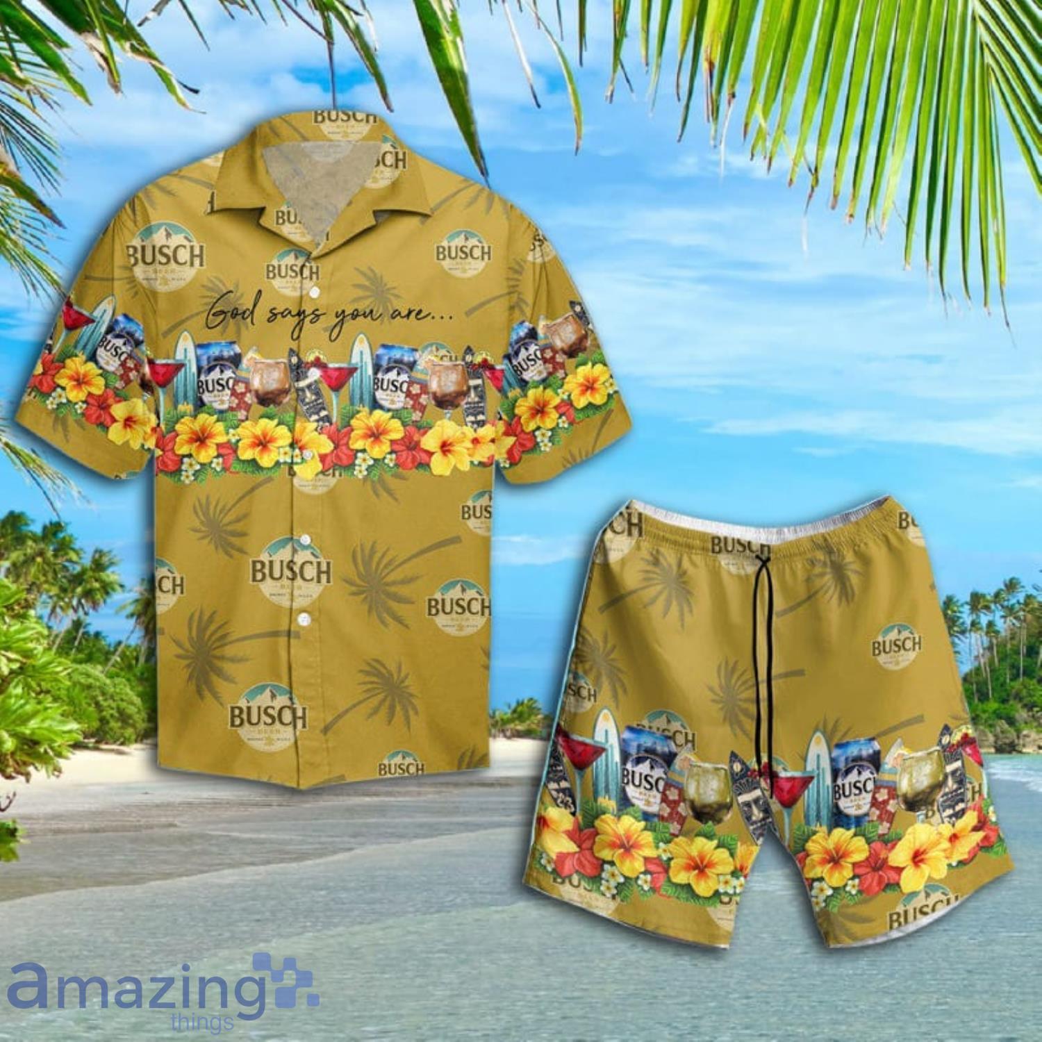 Summer Busch Beer Short Sleeve Hawaiian Shirt And Short