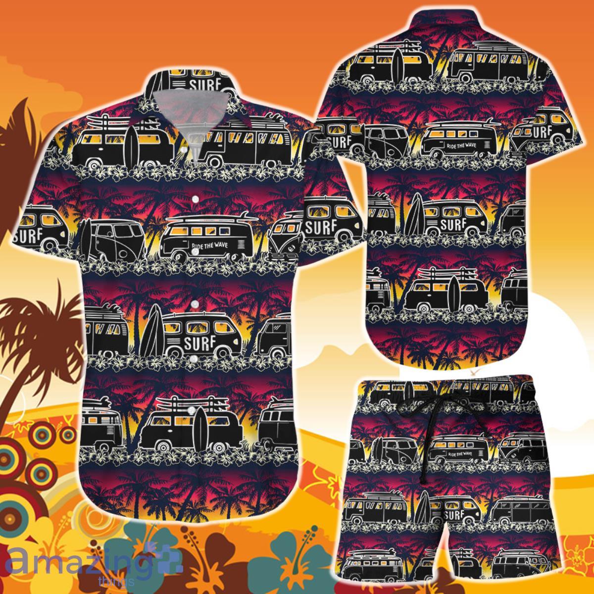Sunset Hawaiian Shirt And Short Tropical Palm Tree Van Surf Tropical Themed Gift Ideas Details: