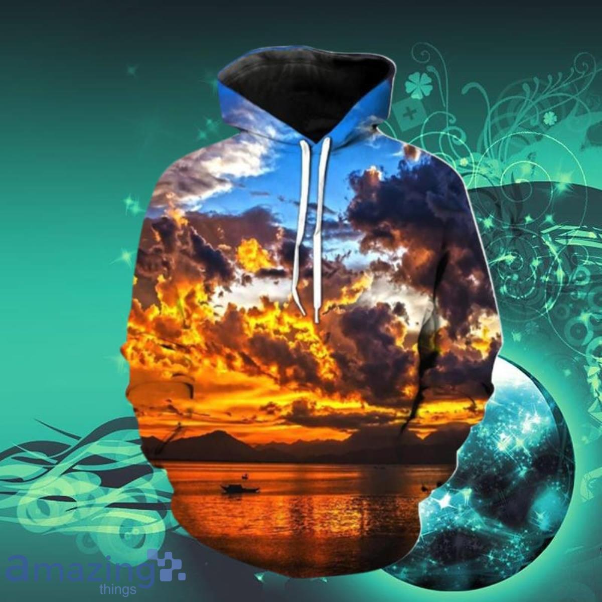 Crafted with meticulous attention to detail, this hoodie features a stunning 3D image of a picturesque sunset reflecting off the calm waters of a tranquil lake. The vibrant colors and lifelike design create a mesmerizing visual effect that will turn heads wherever you go.
