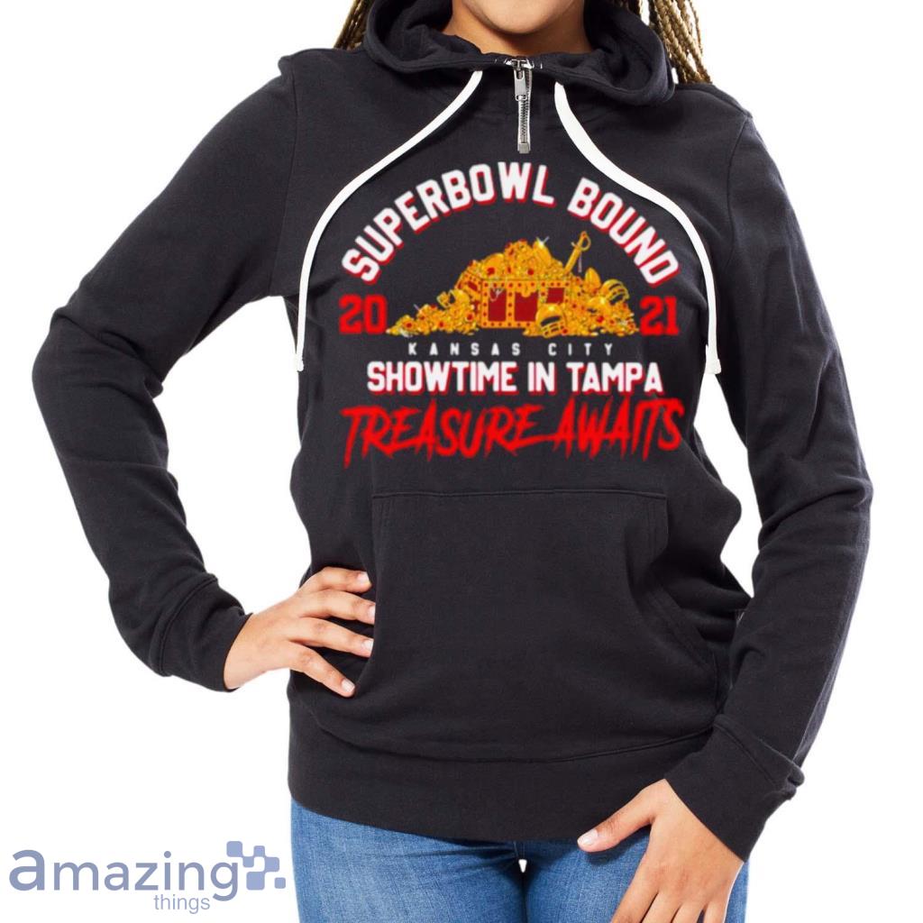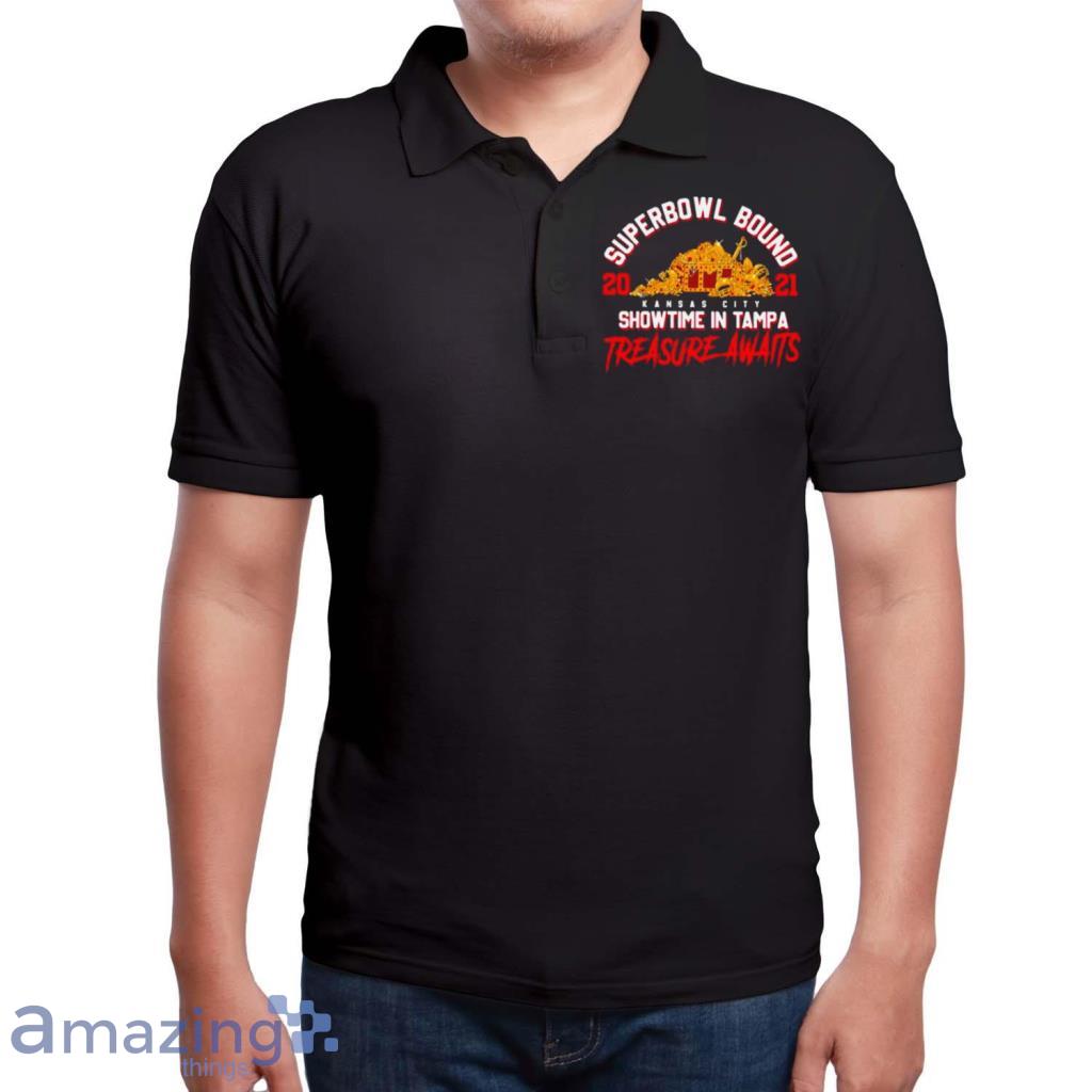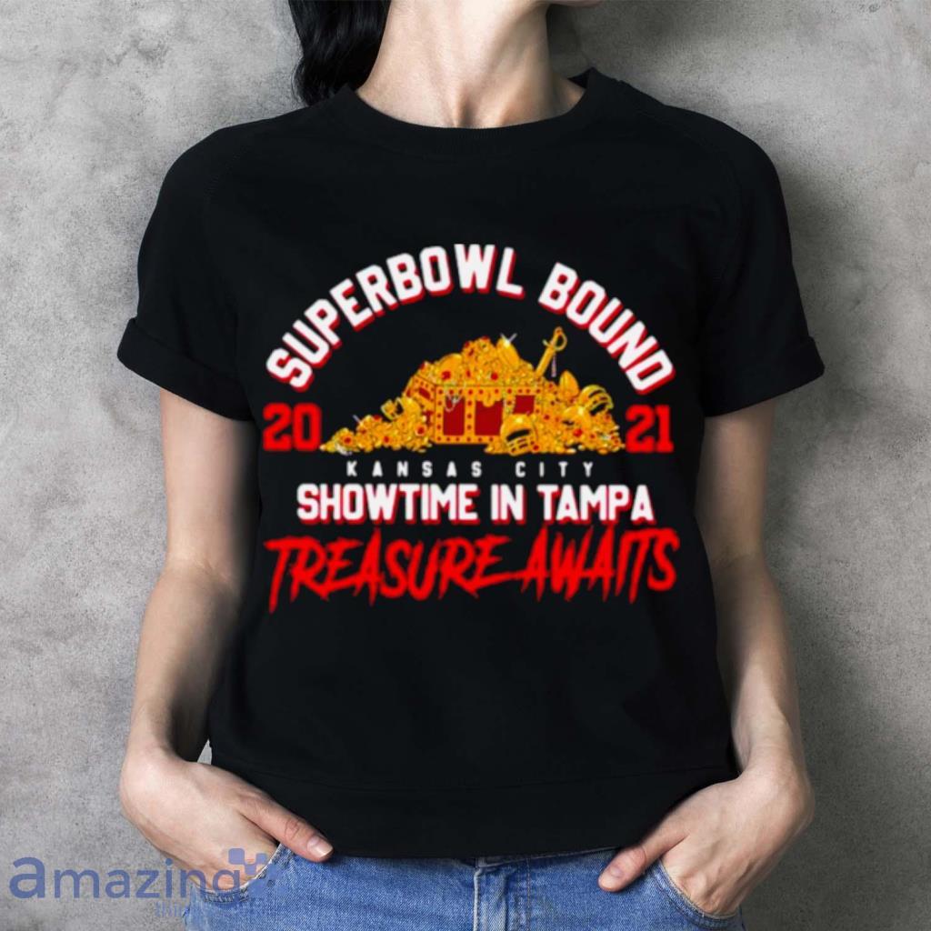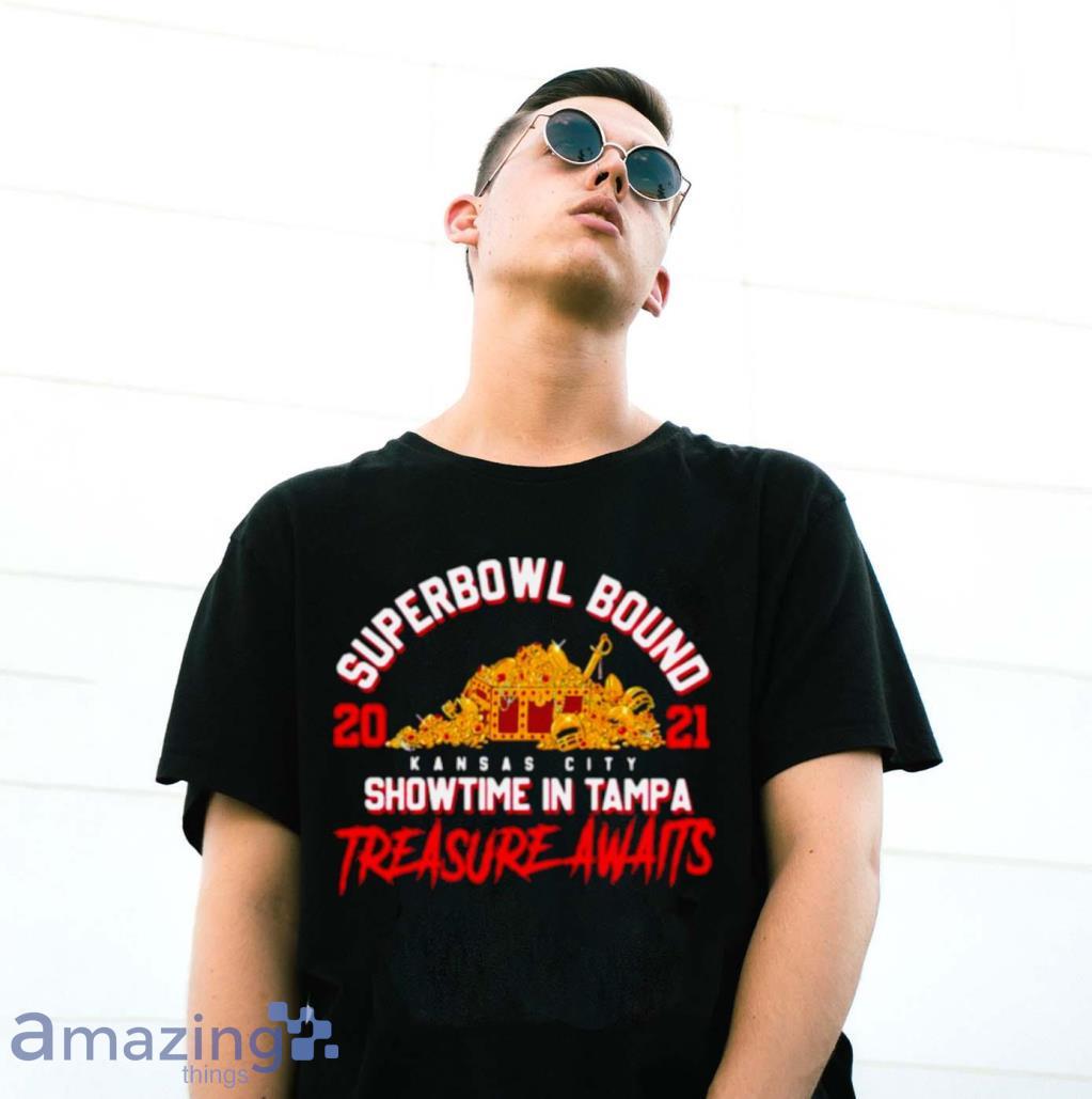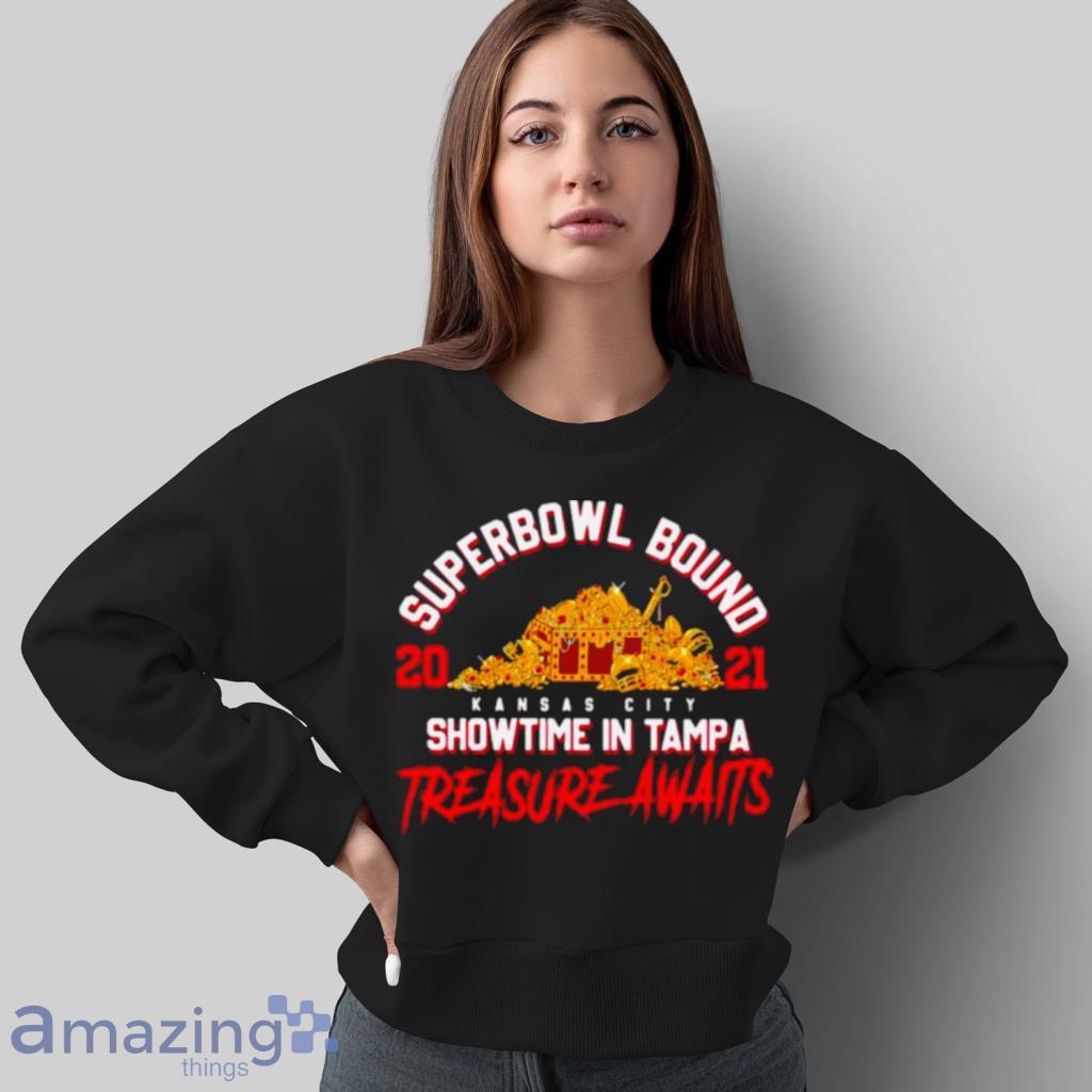The Superbowl Bound Showtime In Tampa Treasure Awaits Gold Shirt is not just a piece of clothing; it’s a symbol of your unwavering loyalty. Its impeccable design showcases the iconic Chiefs logo, reminding everyone of the team’s rich history and relentless pursuit of victory. Wear it with pride and let the world know that you’re a true fan.