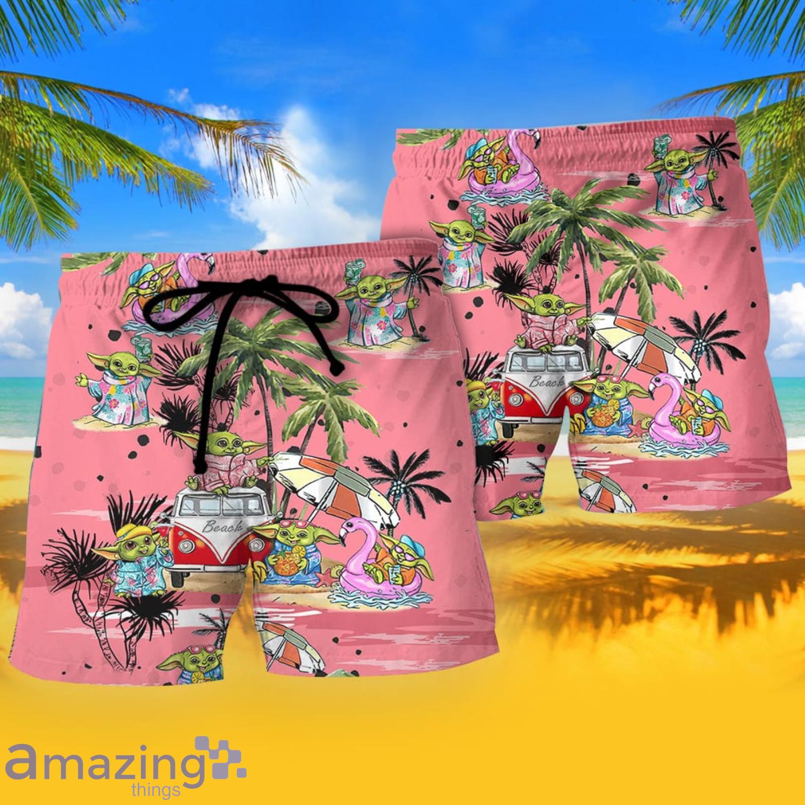 Some of the SW Disney Baby Yoda Pink Summer Gift Beach Shorts photos