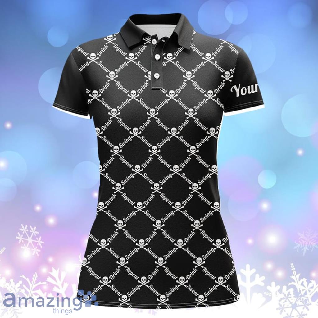 Swing Swear Drink Repeat Golf Skull Custom Name Polo Shirt Women Black Information:
