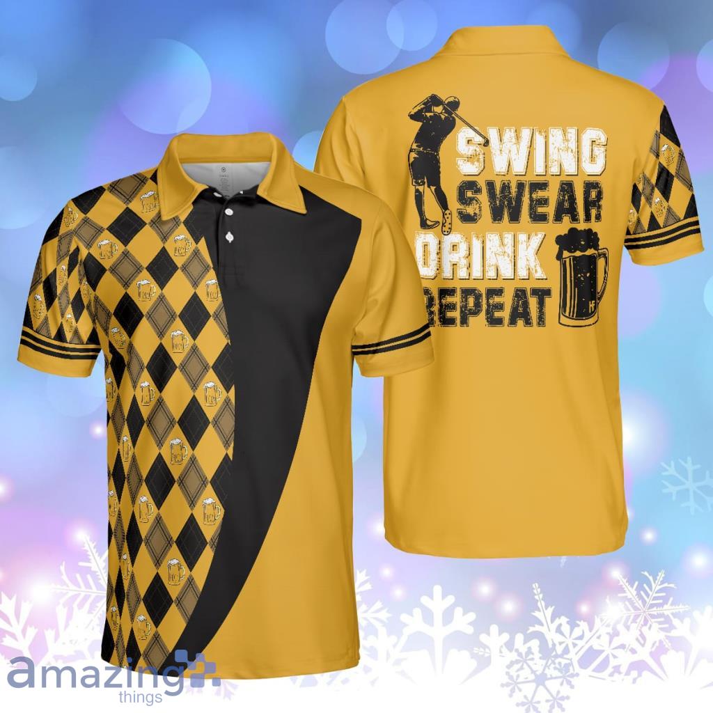 Get ready to swing, swear, and drink in style with our Swing Swear Drink Repeat Versatile Argyle Pattern for Male Golfers, Skull Golf Shirt. This unique and eye-catching shirt is designed specifically for golfers who want to make a bold statement on the green.