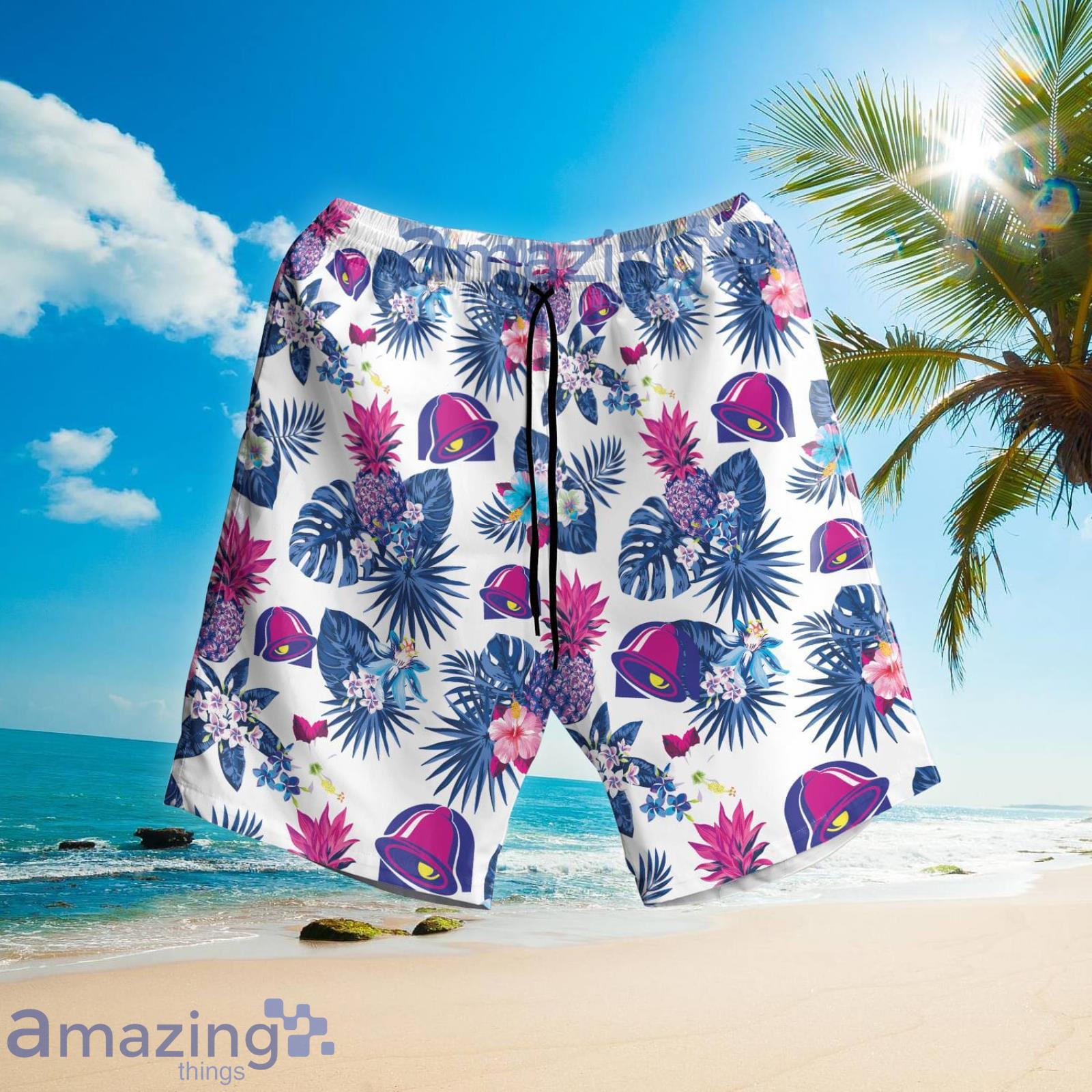 Taco Bell Purple Pineapple Hawaii Beach Summer Set White Hawaiian Shirt And Shorts Details: