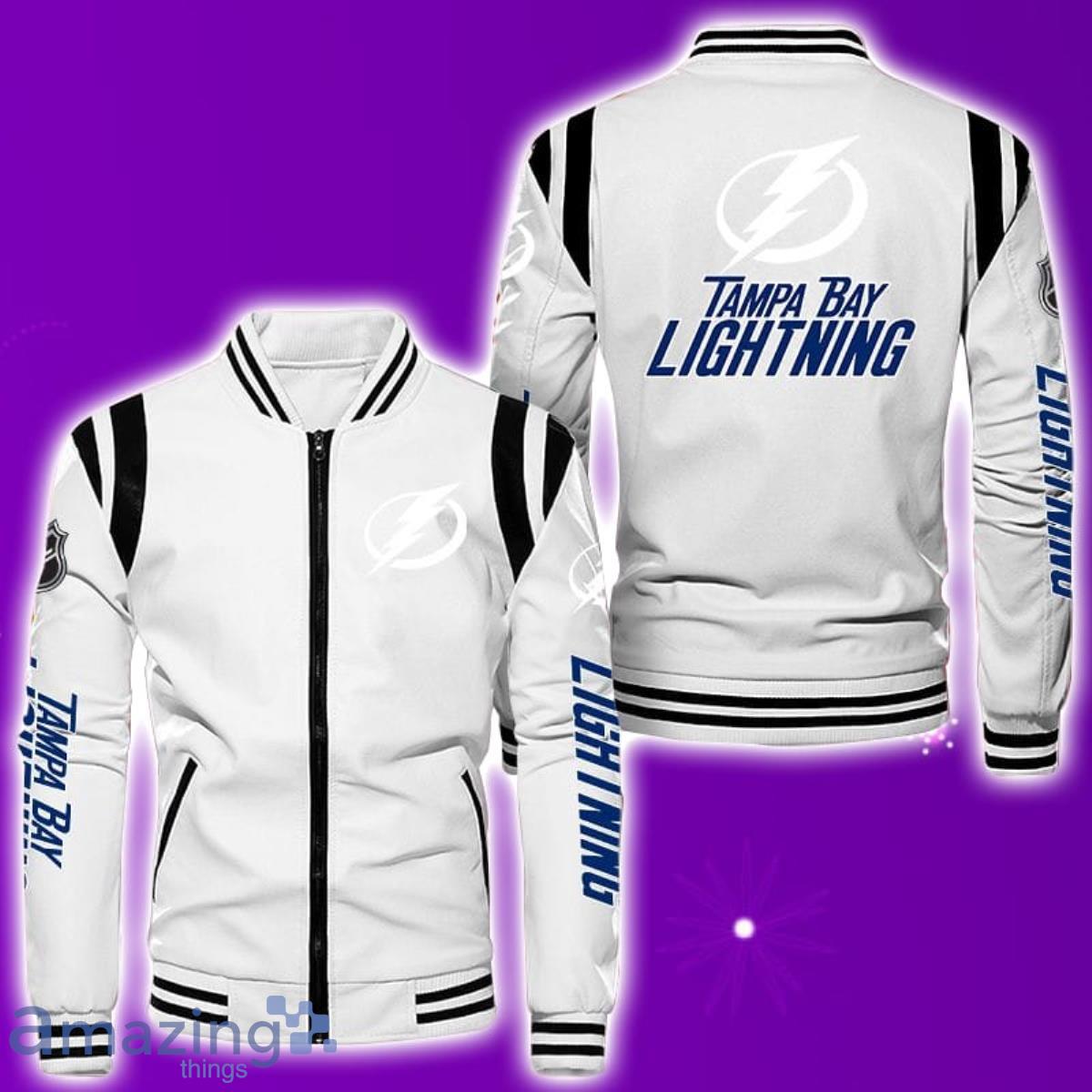Made from premium quality leather, this bomber jacket exudes a timeless and sophisticated charm. The iconic Tampa Bay Lightning logo proudly adorns the front, showcasing your unwavering support for your favorite team. Whether you’re attending a game at the arena or simply going about your day, this jacket is bound to turn heads and spark conversations.