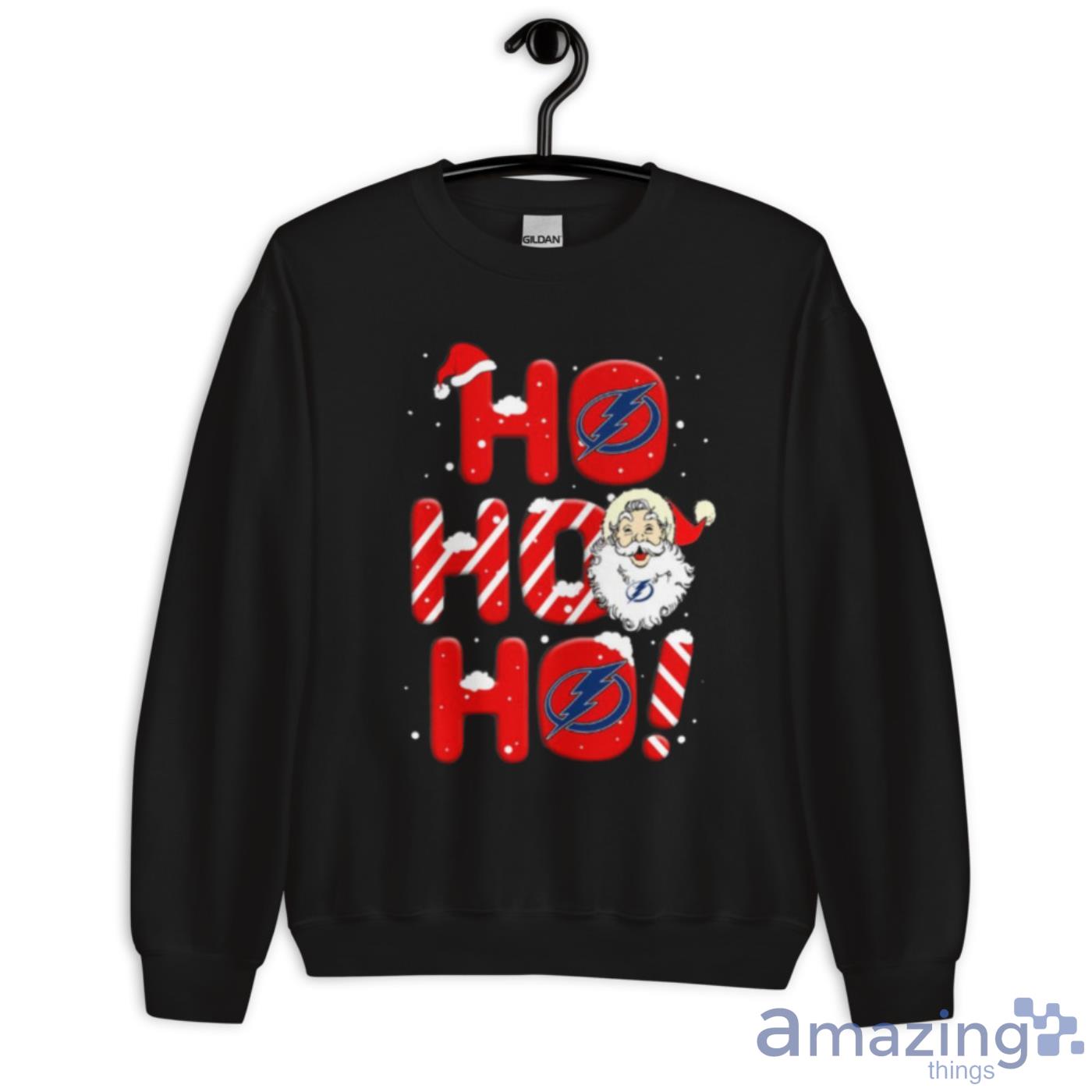 Tampa Bay Lightning NHL Hockey Ho Ho Ho Santa Claus Merry Christmas Shirt Details