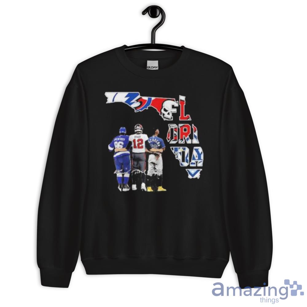 The standout feature of this shirt is undoubtedly the signatures of Nikita Kucherov, Tom Brady, and Randy Arozarena, all of whom have brought glory to the Tampa Bay region. These signatures are printed in high-quality ink, ensuring that they will last for years to come.