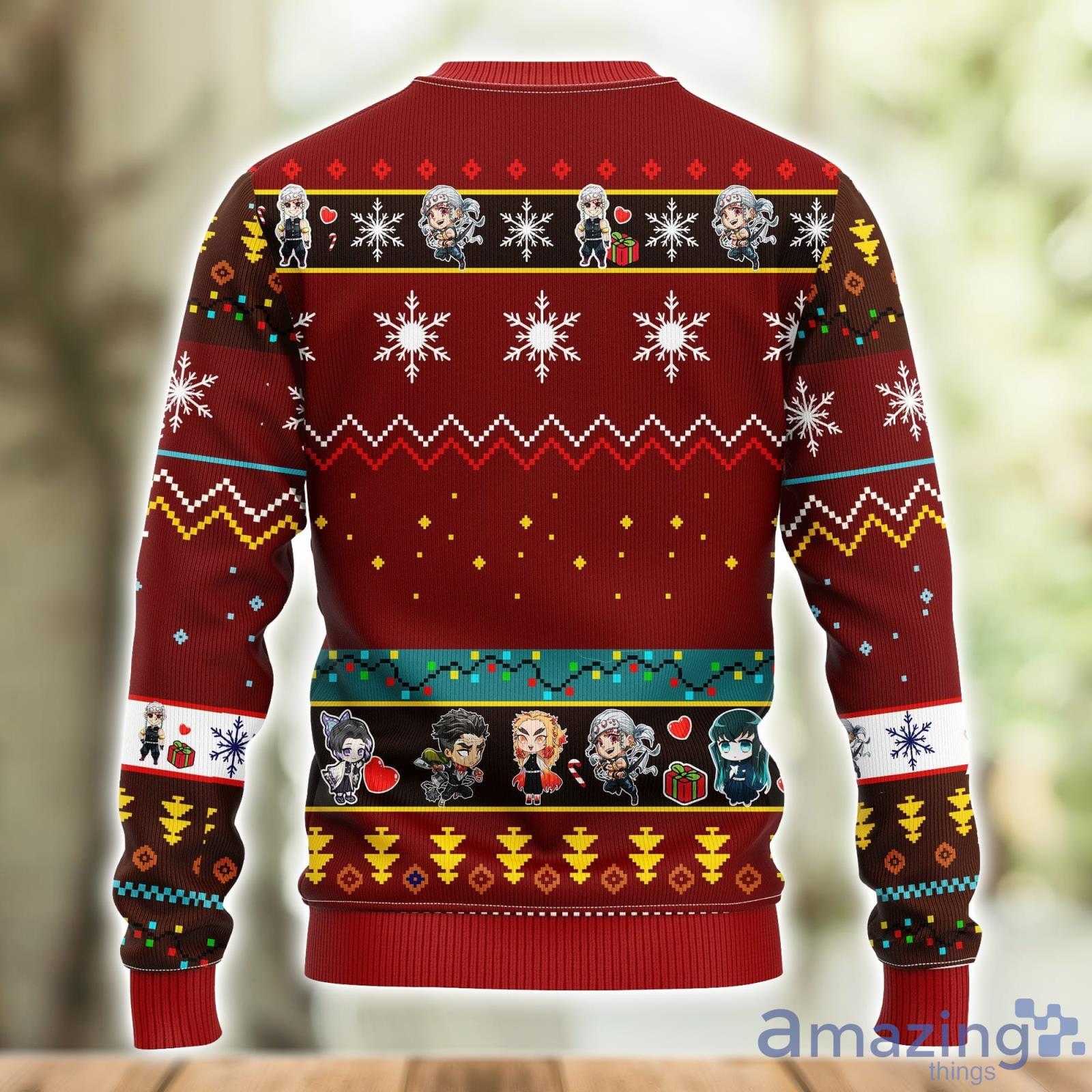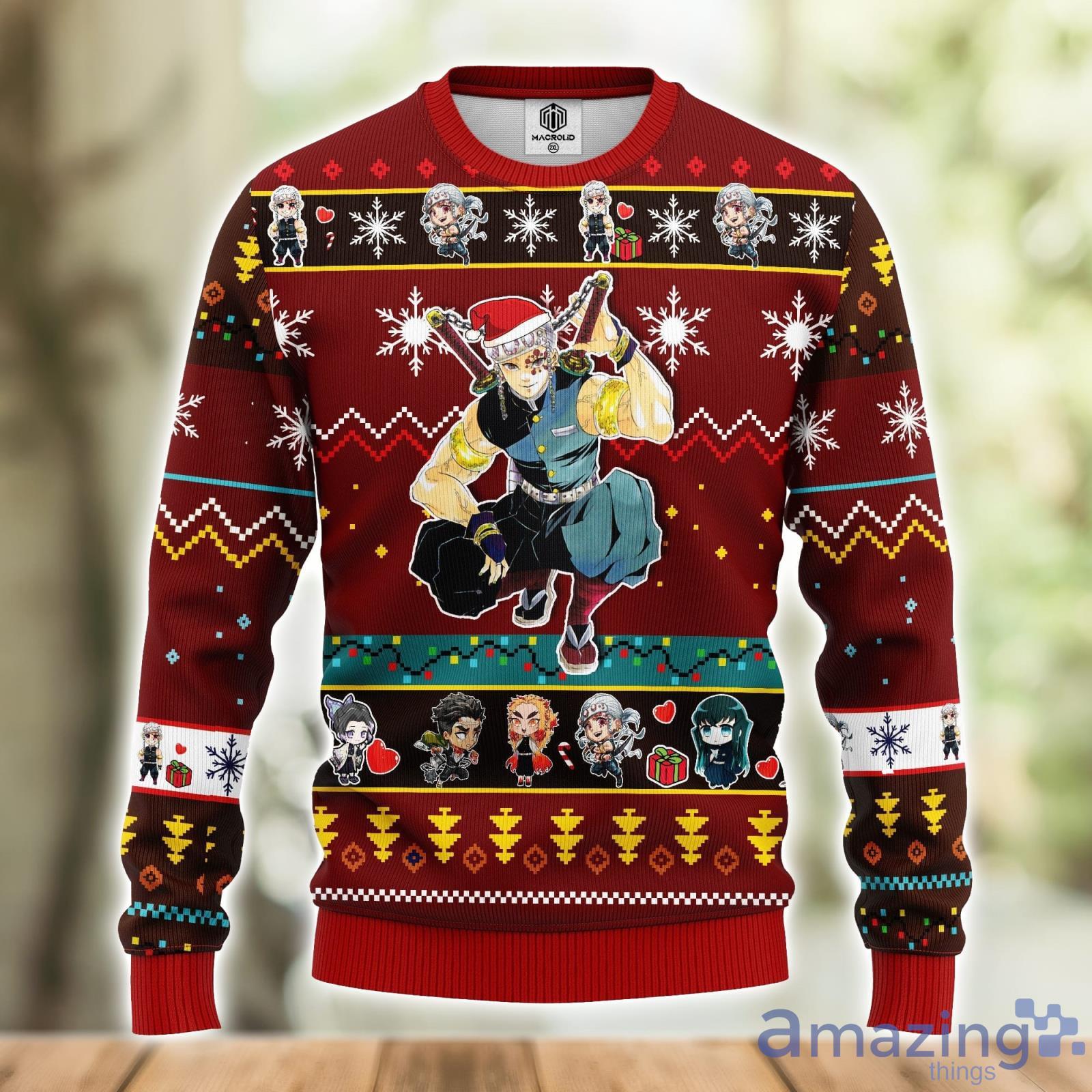 Crafted with the utmost care and attention to detail, this sweater features an intricate design showcasing Tengen Uzui, one of the most iconic characters from the hit anime series. The bold red color perfectly complements the festive season, ensuring you’ll be the center of attention at any Christmas party or gathering.