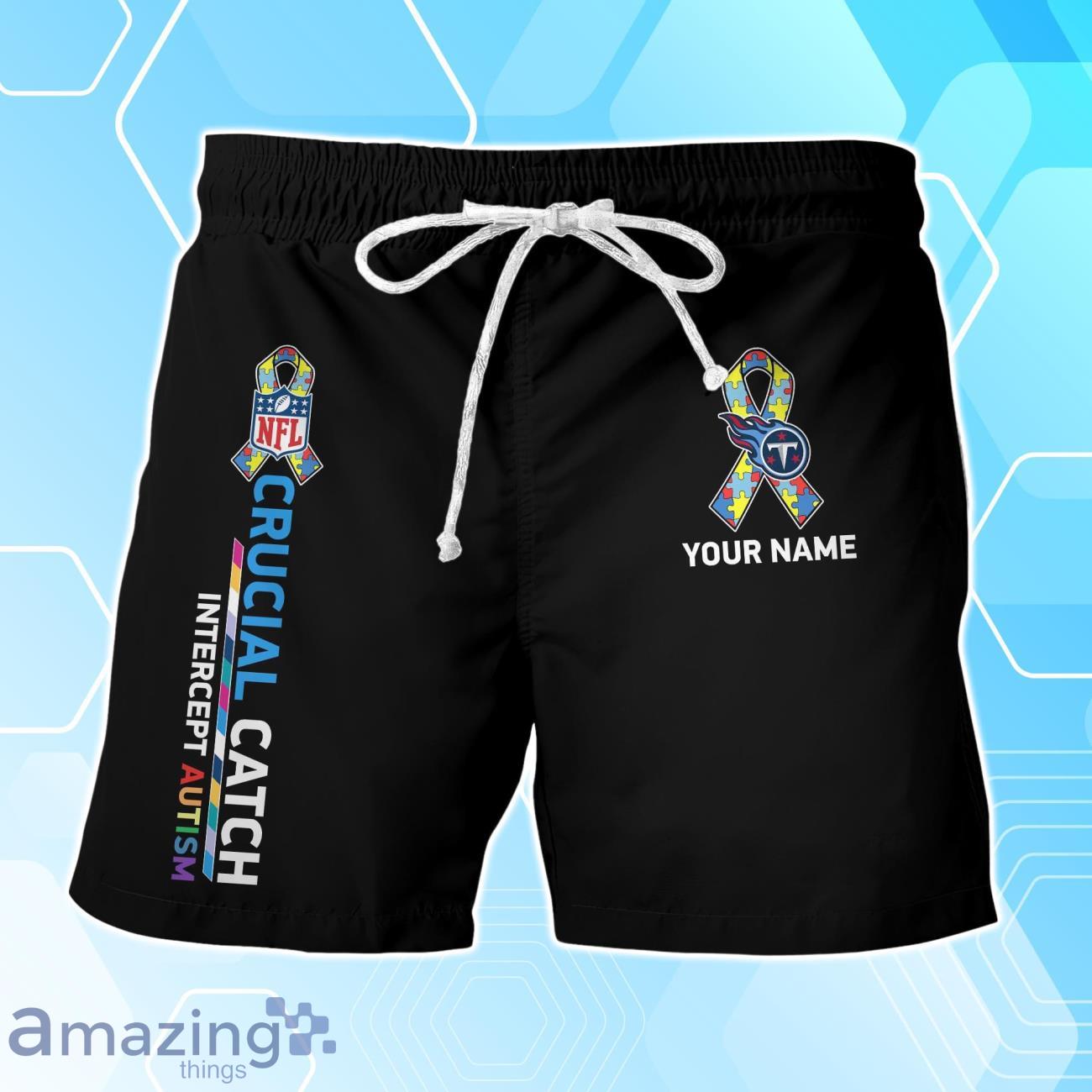 Whether you’re heading to a game, a tailgate party, or simply want to showcase your team pride during the summer months, this Tennessee Titans Hawaiian Shirt & Short Crucial Catch Intercept Autism Custom Name combo is an absolute must-have. Don’t miss out on the opportunity to rock this trendy outfit and support a great cause at the same time. Order yours now and be the envy of Titans fans everywhere!