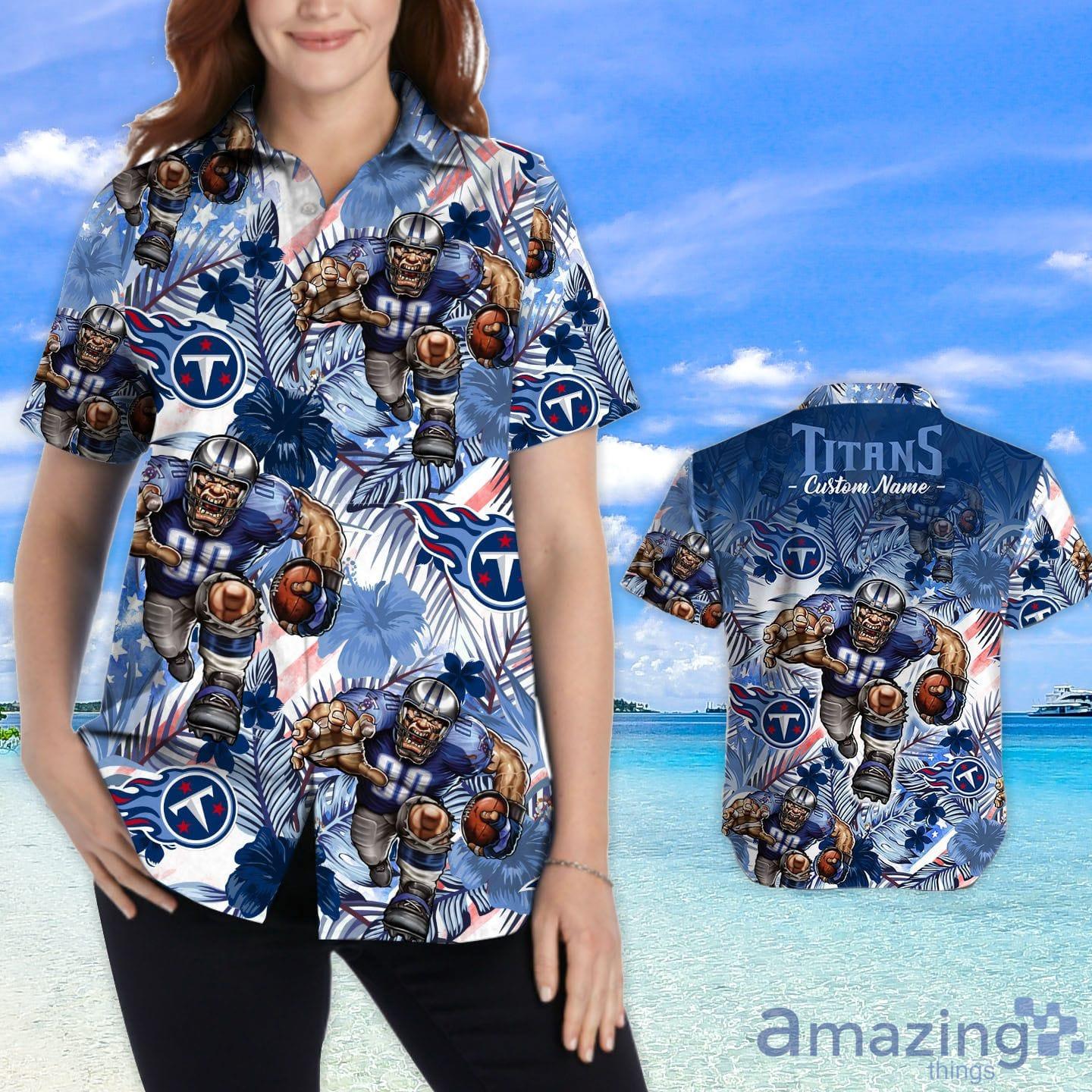 Introducing our Hawaiian-themed custom name shirt! This unique shirt is perfect for any Titans fan who wants to show their support for the team in a truly original way. The shirt features a tropical floral design with the Titans logo and your custom name printed in bold letters. Whether you’re wearing it to the game or just to the beach, this shirt is sure to turn heads and show everyone that you’re a diehard Titans fan.