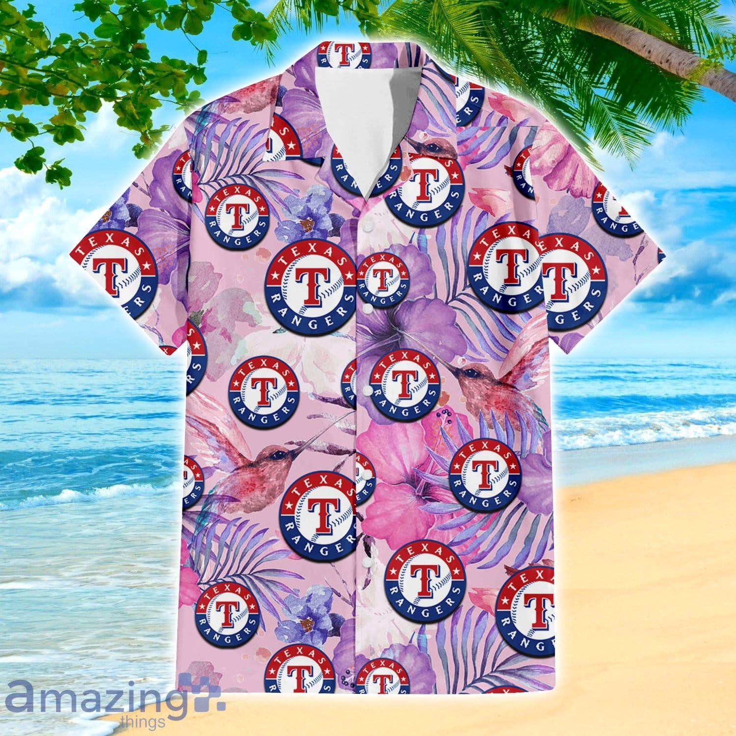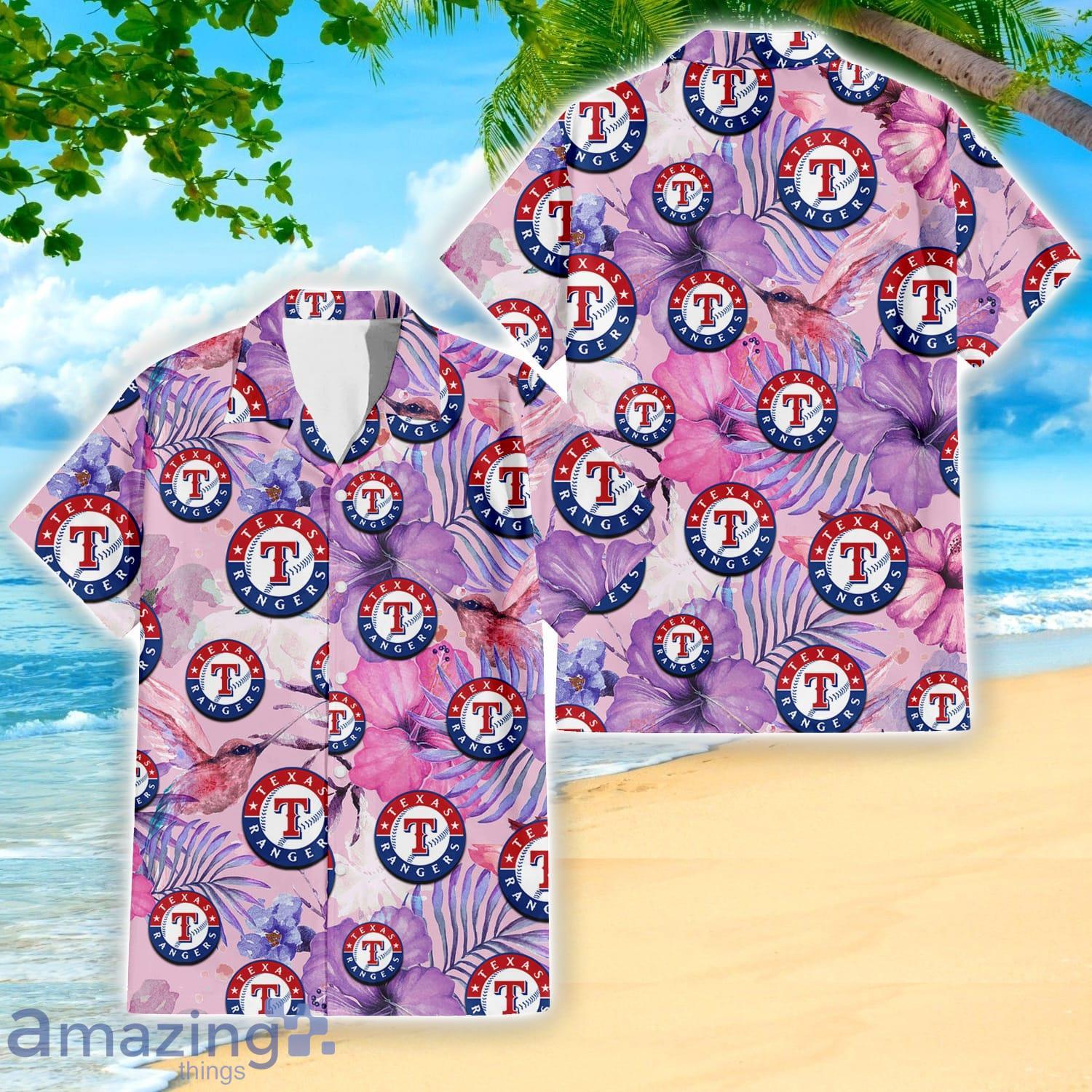 Texas Rangers White Purple Hibiscus Pink Hummingbird Pink Hawaiian Shirt For Fans Details: