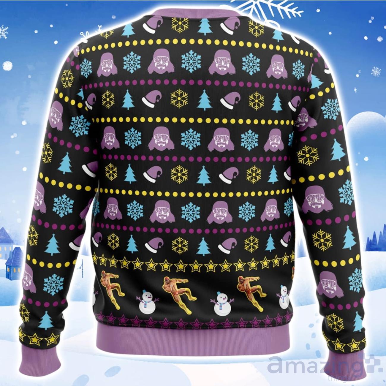 Crafted with the utmost care, this sweater features a soft and cozy fabric that ensures comfort and warmth throughout the chilly winter nights. With a vibrant and festive design that incorporates iconic pro wrestling imagery, this sweater will make you the center of attention at any holiday gathering.