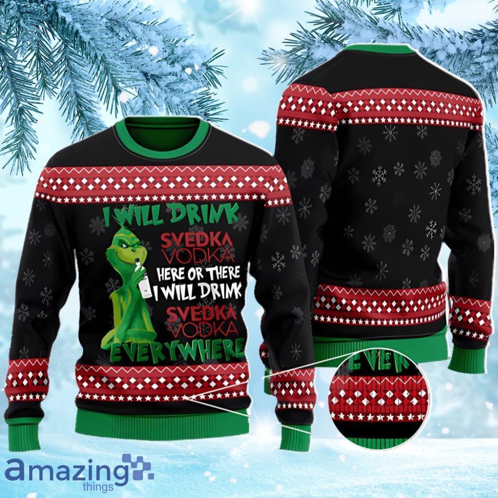 The Grinch I Will Drink Here Or There I Will Drink Svedka Vodka Christmas Ugly Sweater