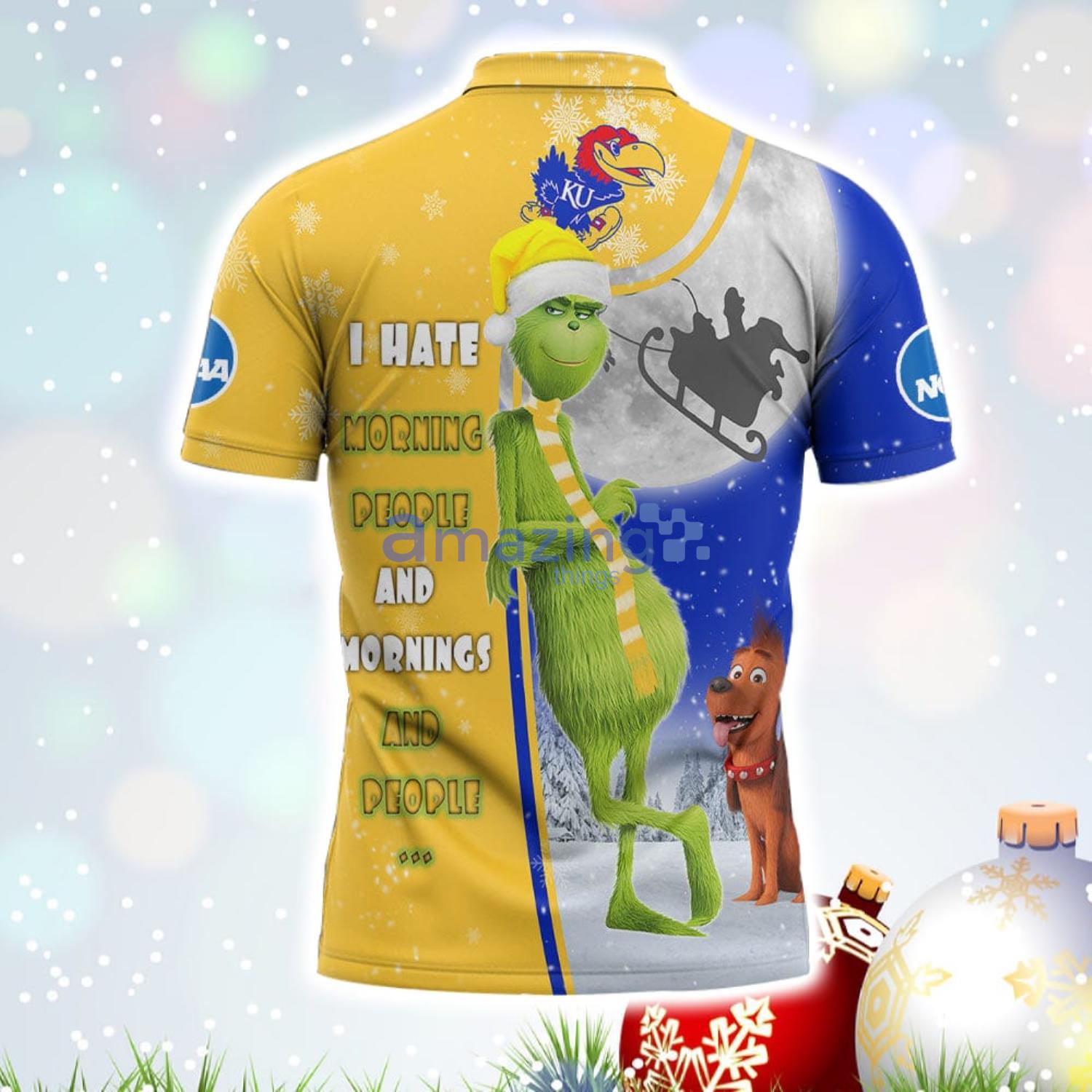 The Grinch Kansas Jayhawks NCAA I Hate Morning People Christmas Gift Polo Shirt Information:
