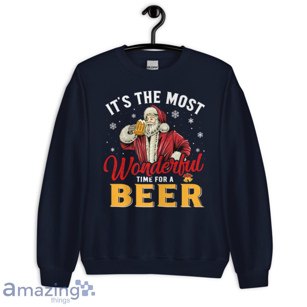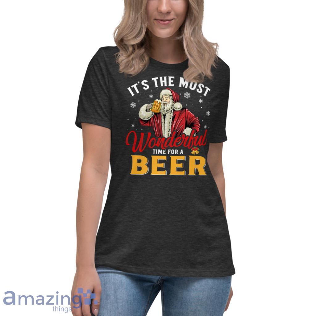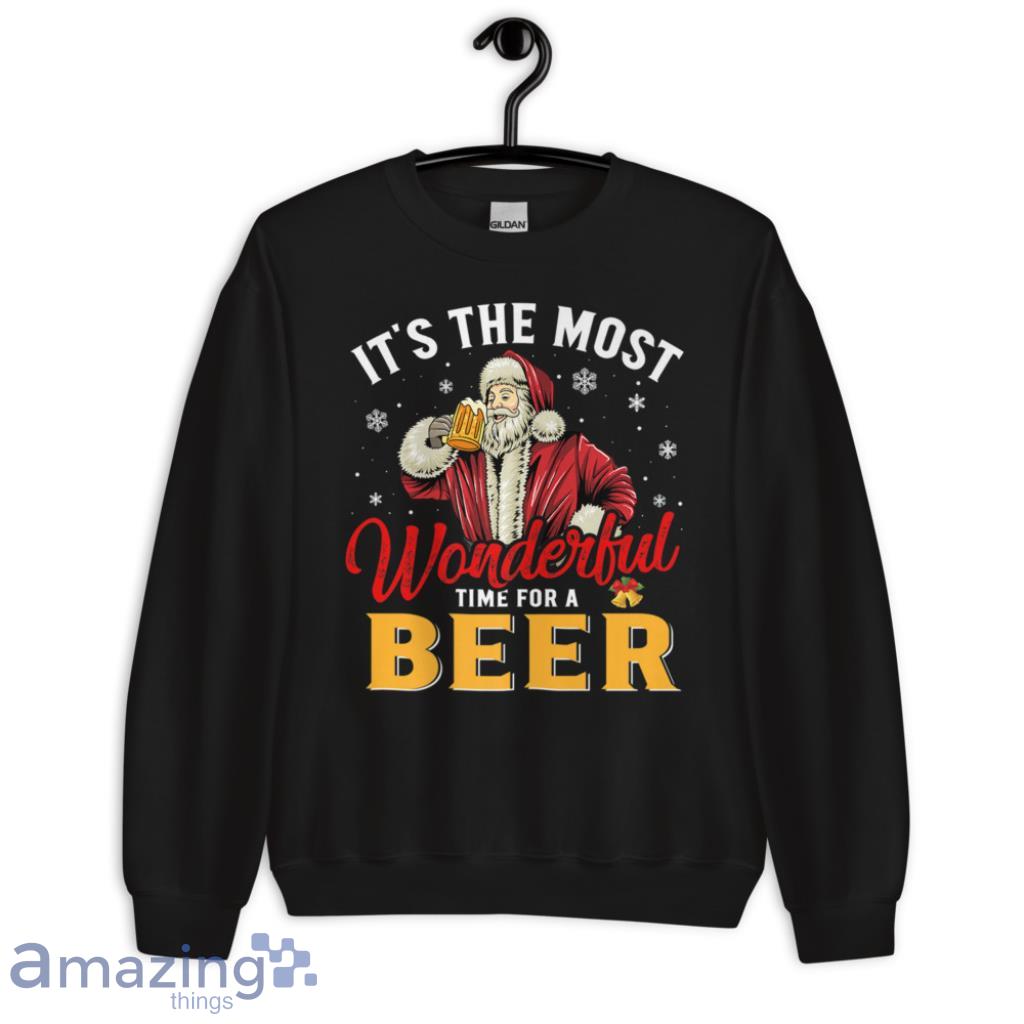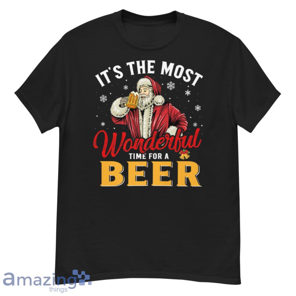 The Most Wonderful Time For A Beer Santa CLaus Xmas Christmas Shirt Details