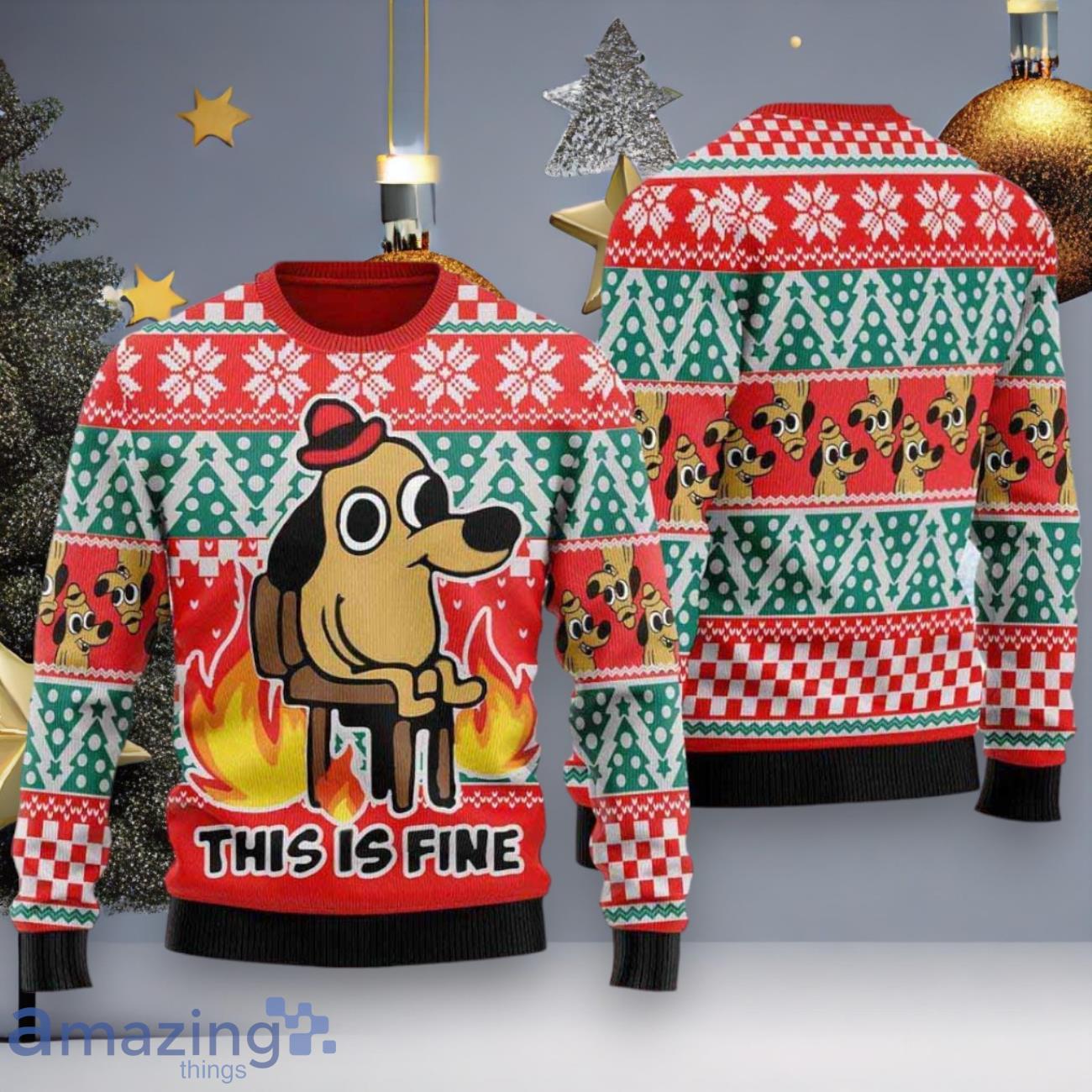 This Is Fine Meme Ugly Christmas Sweater Informations: