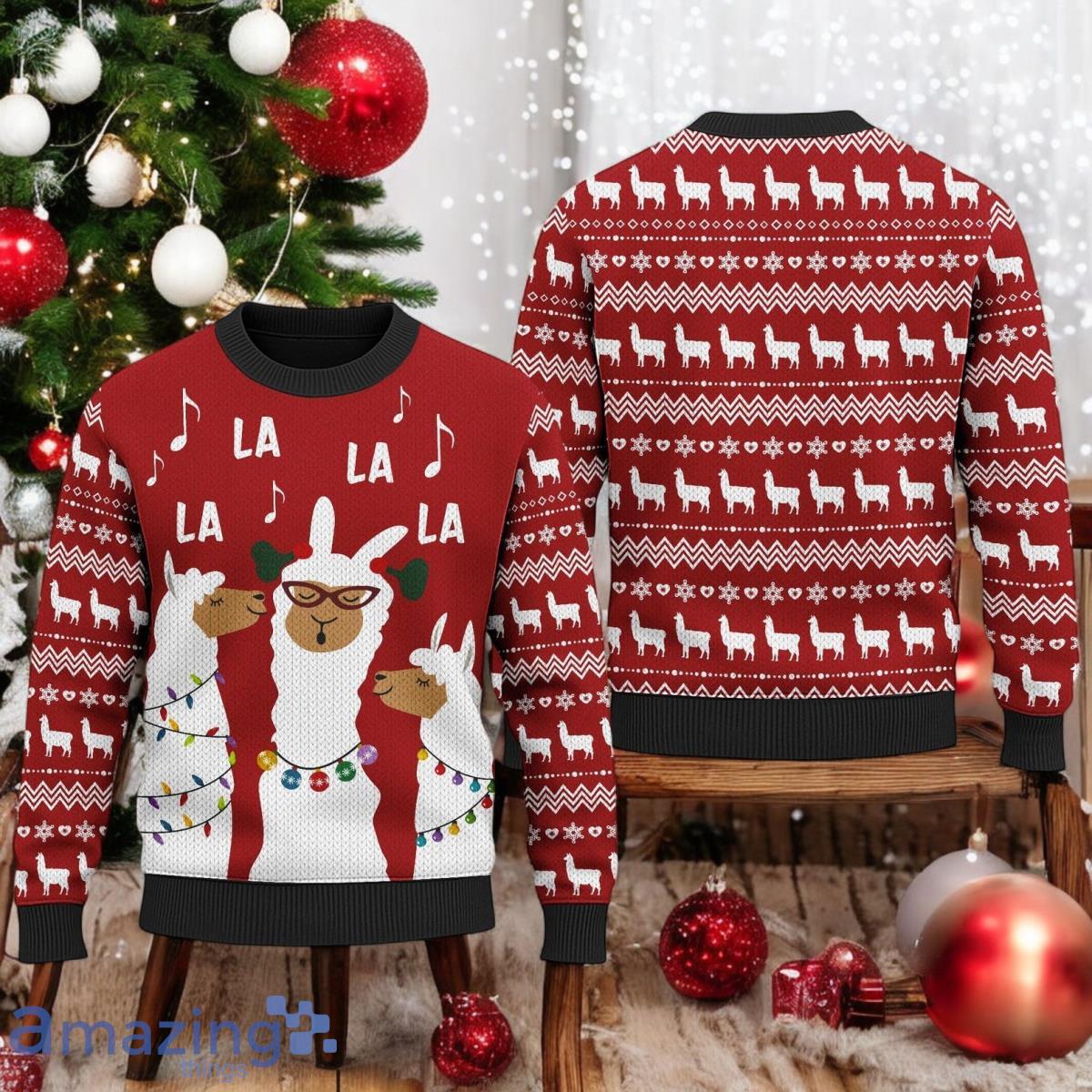 Three Llamas Singing Ugly Christmas Sweater Llama La La La Xmas Ugly Christmas Holiday Sweater