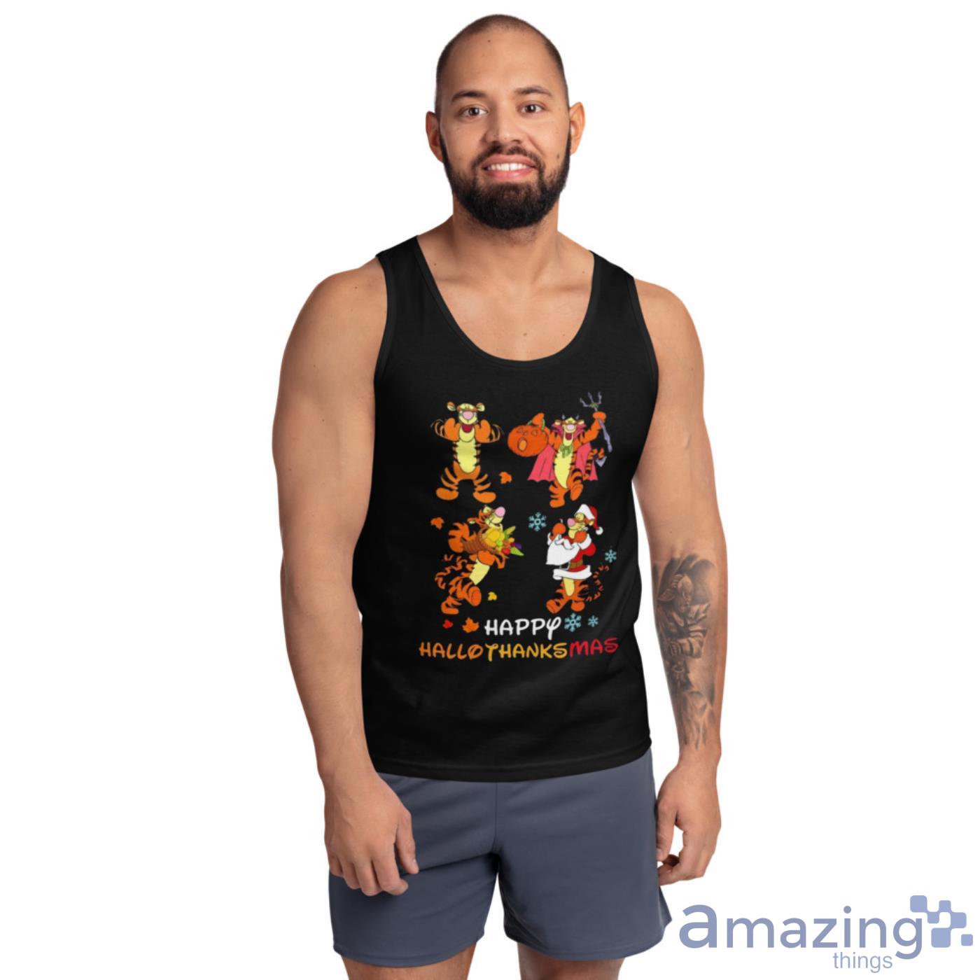 Tigger is one of the most popular characters on television, and now you can wear his happy hallothanksmas shirt at work or at home! This professional-grade t-shirt is made from 100% cotton and features a colorful tiger graphics print. The comfortable fit will make you feel confident and festive all season long, and the machine-washable fabric makes it easy to keep clean. Order your Tigger Happy Hallothanksmas shirt today!