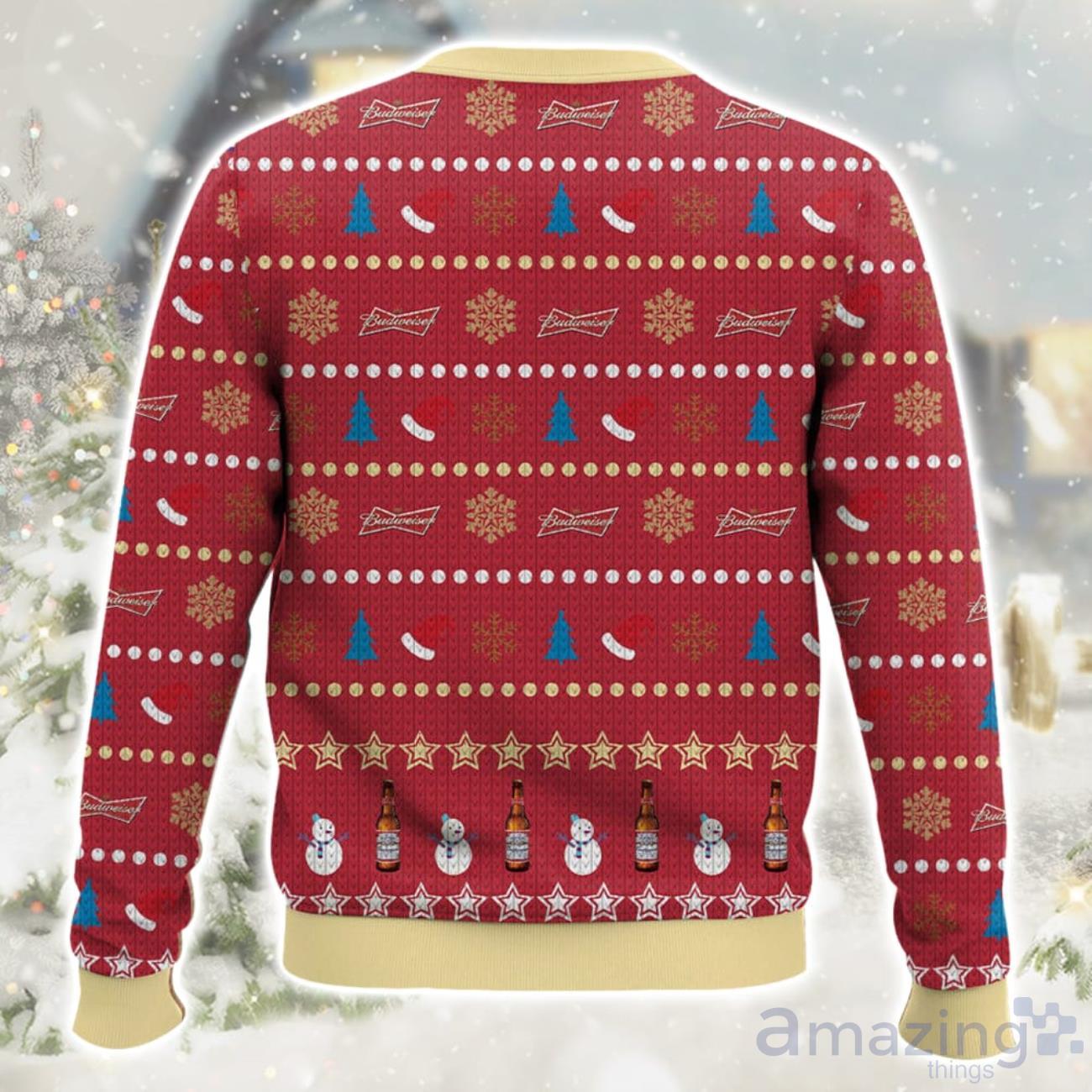 With its iconic Budweiser branding and Christmas-themed elements, this sweater is a unique and memorable gift for beer enthusiasts and holiday lovers alike. Surprise your loved ones with this one-of-a-kind present and watch their faces light up with joy.