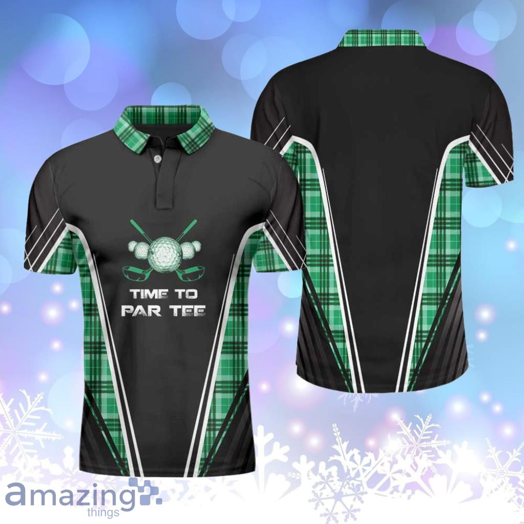 Time To Par Tee Black And Green Green Tartan Plaid Pattern Personalized Polo Shirt