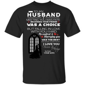 The core of this shirt’s appeal lies in its deeply personal and emotional message. It reads: “To my husband, meeting you was fate, becoming your friend was a choice. But falling in love with you I had no control & marrying you was the best decision I ever made/ I love you forever & always. Love your wife.” This text encapsulates the evolution of love – acknowledging the serendipitous beginning, the conscious decision to build a friendship, the irresistible force of falling in love, and the ultimate joy of marriage. It’s a powerful <love message shirt from a wife to her husband.