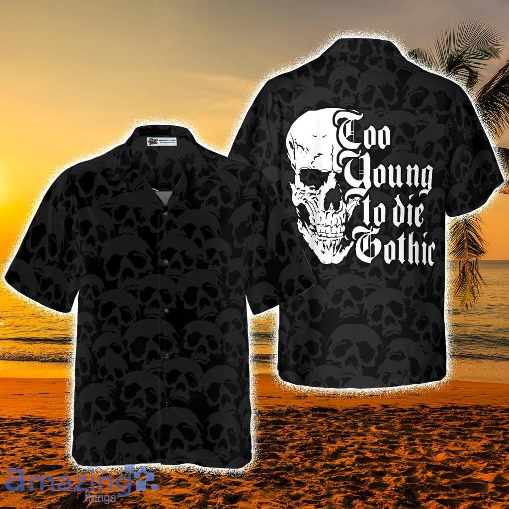 The Too Young To Die Gothic Hawaiian Shirt is available in a range of sizes to ensure a perfect fit for all body types. Whether you’re looking for a shirt to wear to a party or just to add to your everyday wardrobe, this shirt is sure to impress.