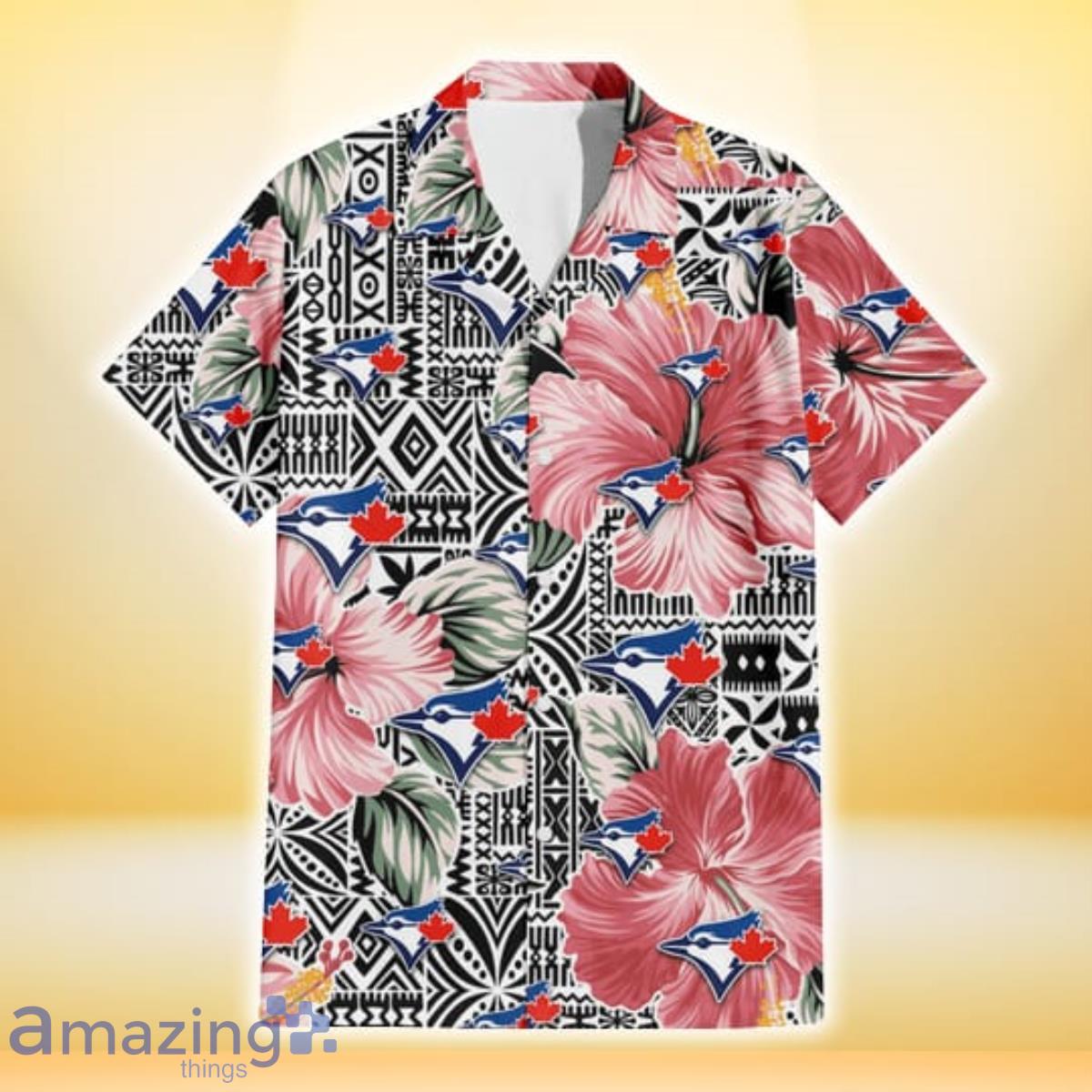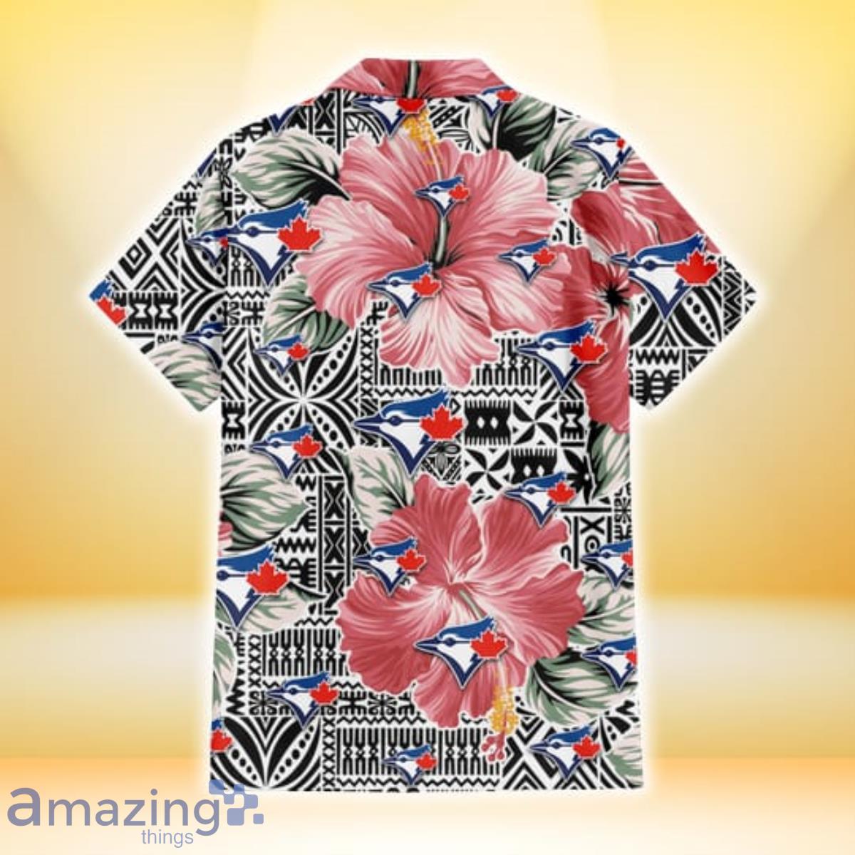 Toronto Blue Jays Pink Hibiscus Black Pattern White Background 3D Hawaiian Shirt Gift For Fans
