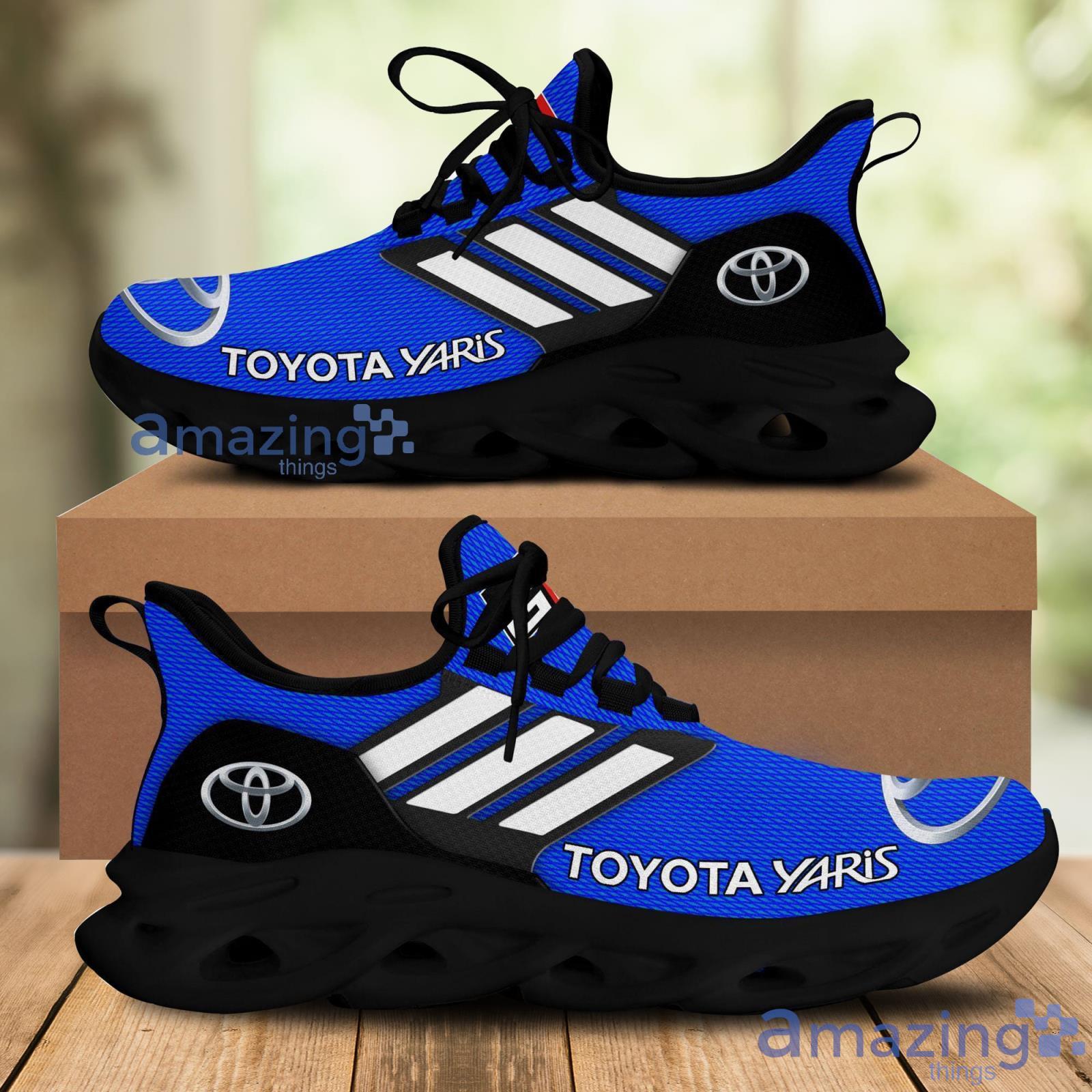 This Toyota Yaris White Striped Blue Chunky Running Sneakers Max Soul Shoes Sport Gift For Men And Women is a breathable, lightweight, and comfortable casual outdoor shoe that has a unique design. It is made of a mesh fabric which makes it sweat absorbent and breathable, while the rubber bottom ensures traction, comfort, and durability. It is available in two colors: black or white sole. There are two styles of shoelace holes so you can choose your preference.