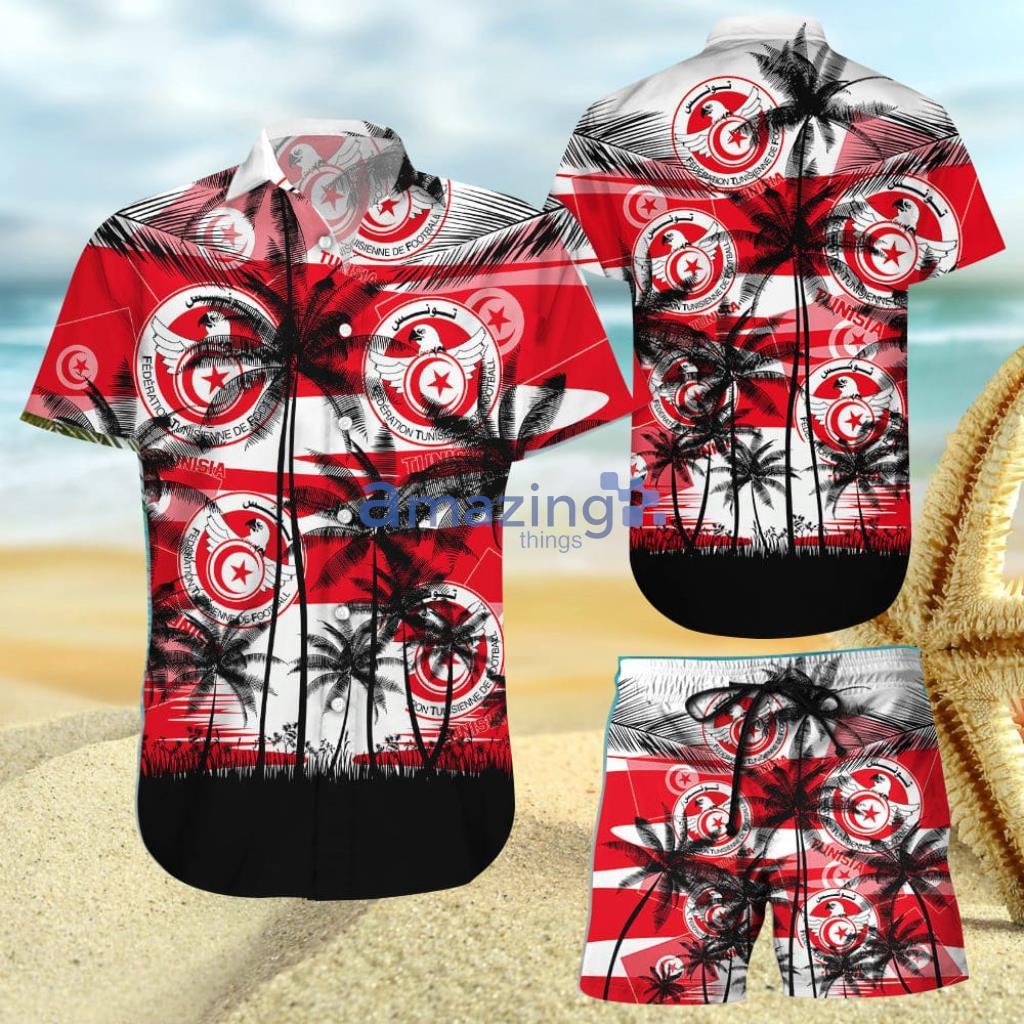 Tunisia Coconut Pattern Hawaiian Soccer Team, World Cup 2022 Qatar Champions, Football Gift Fans World Cup 3D Hawaiian Shirt And Short